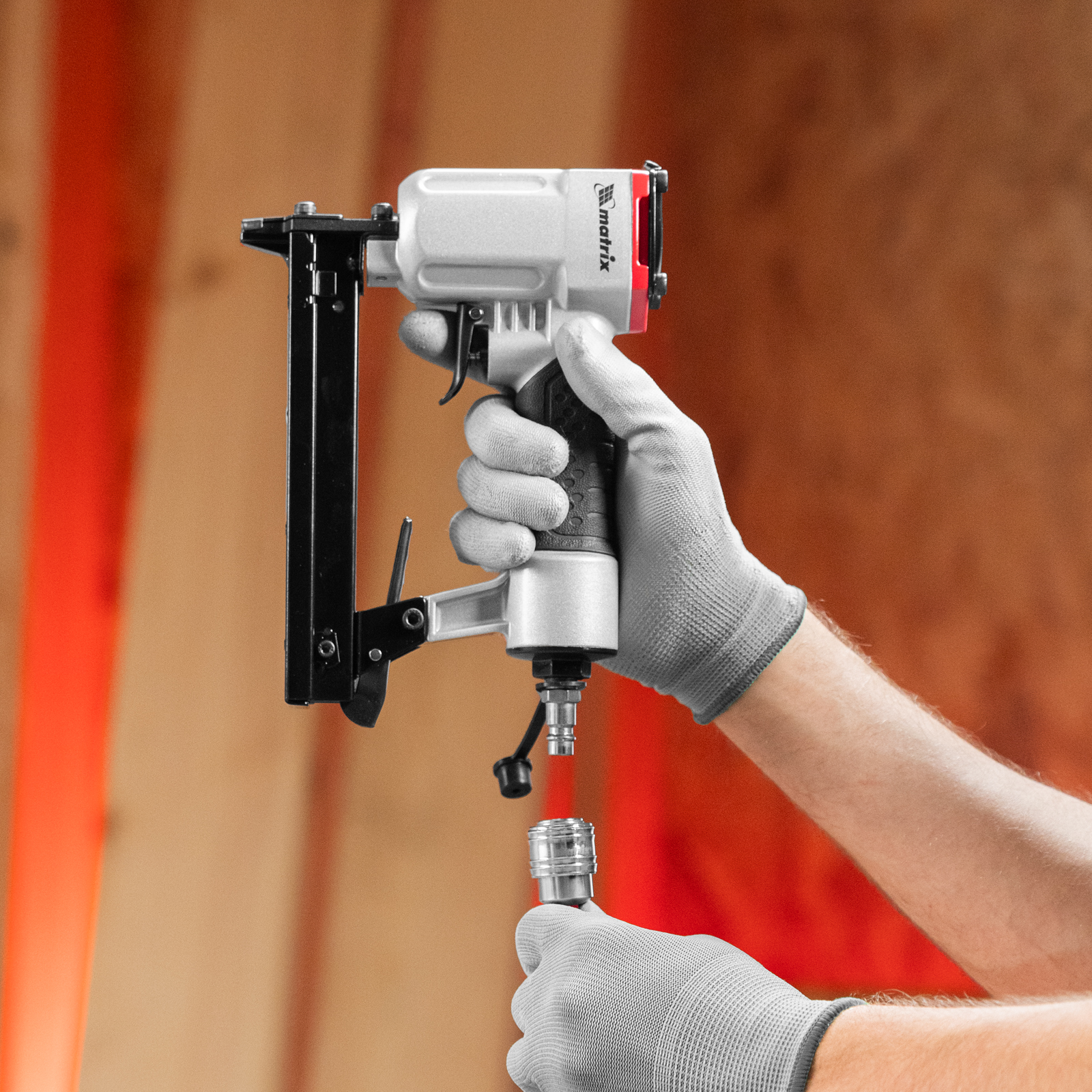 Пневматический степлер Matrix 57420 используется с прямоугольными скобами 20GA длиной от 10 до 22 мм. Его применяют для сборки деревянных каркасов и мебели, ремонта кровли, утепления домов, монтажа окон и дверей, строительства бытовок.