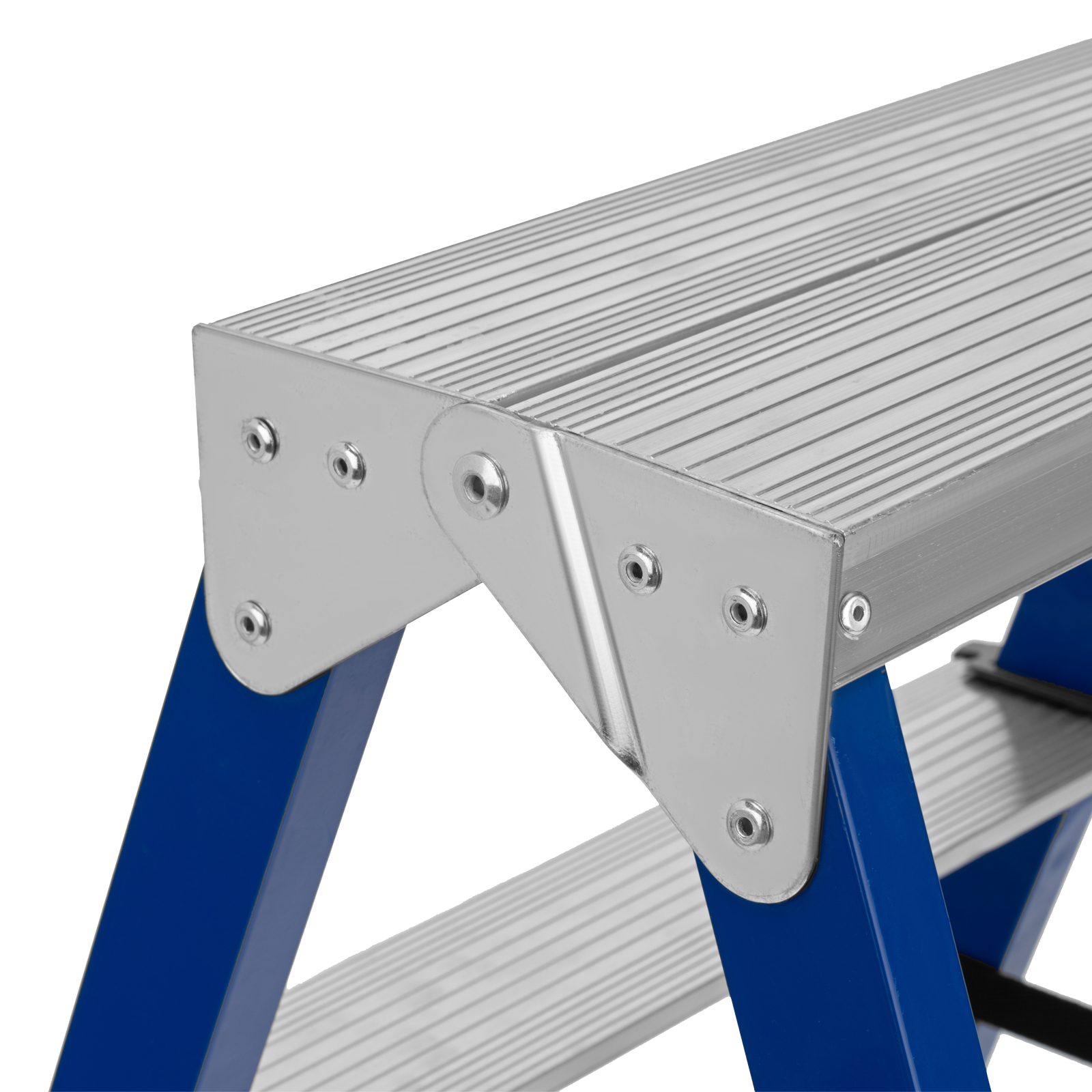 - Безопасность пользователя — широкие алюминиевые ступени не прогибаются, рифление на поверхности не дает поскользнуться.