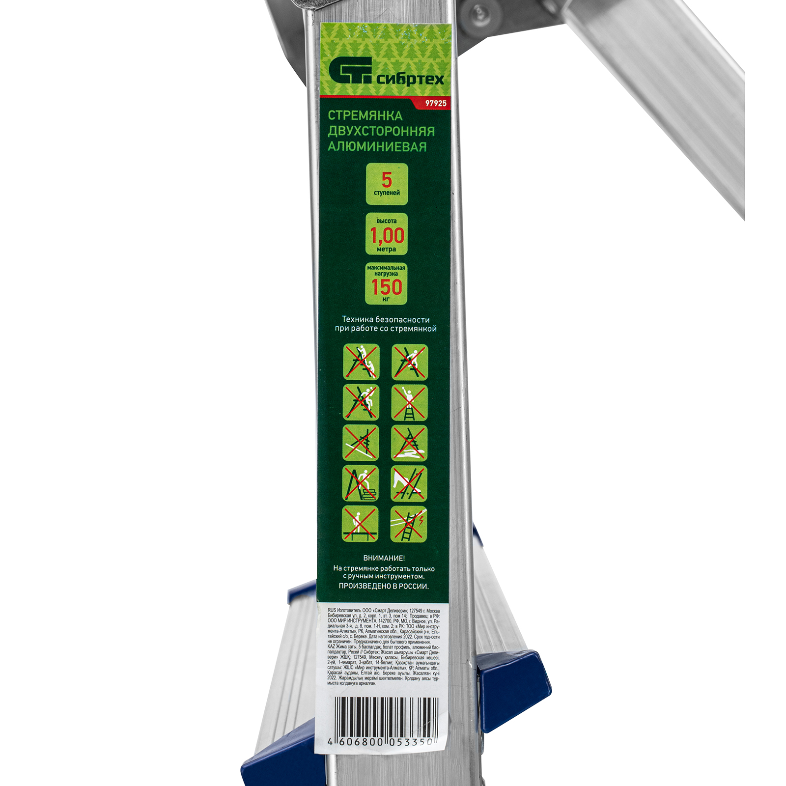 Стремянка двусторонняя 5 ступеней, алюминиевая, Сибртех в Краснодаре