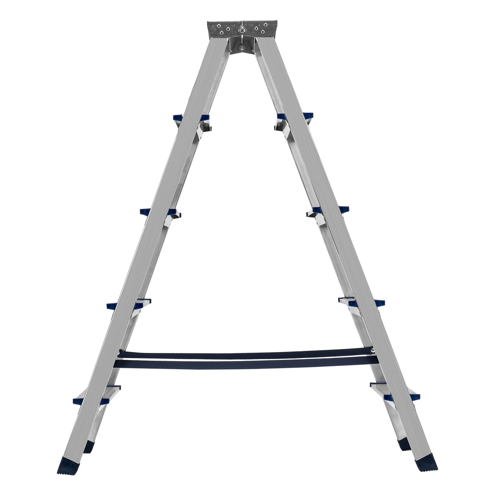 - Продуманная конструкция — нейлоновые страховочные стяжки повышают надежность фиксации стремянки в рабочем положении.