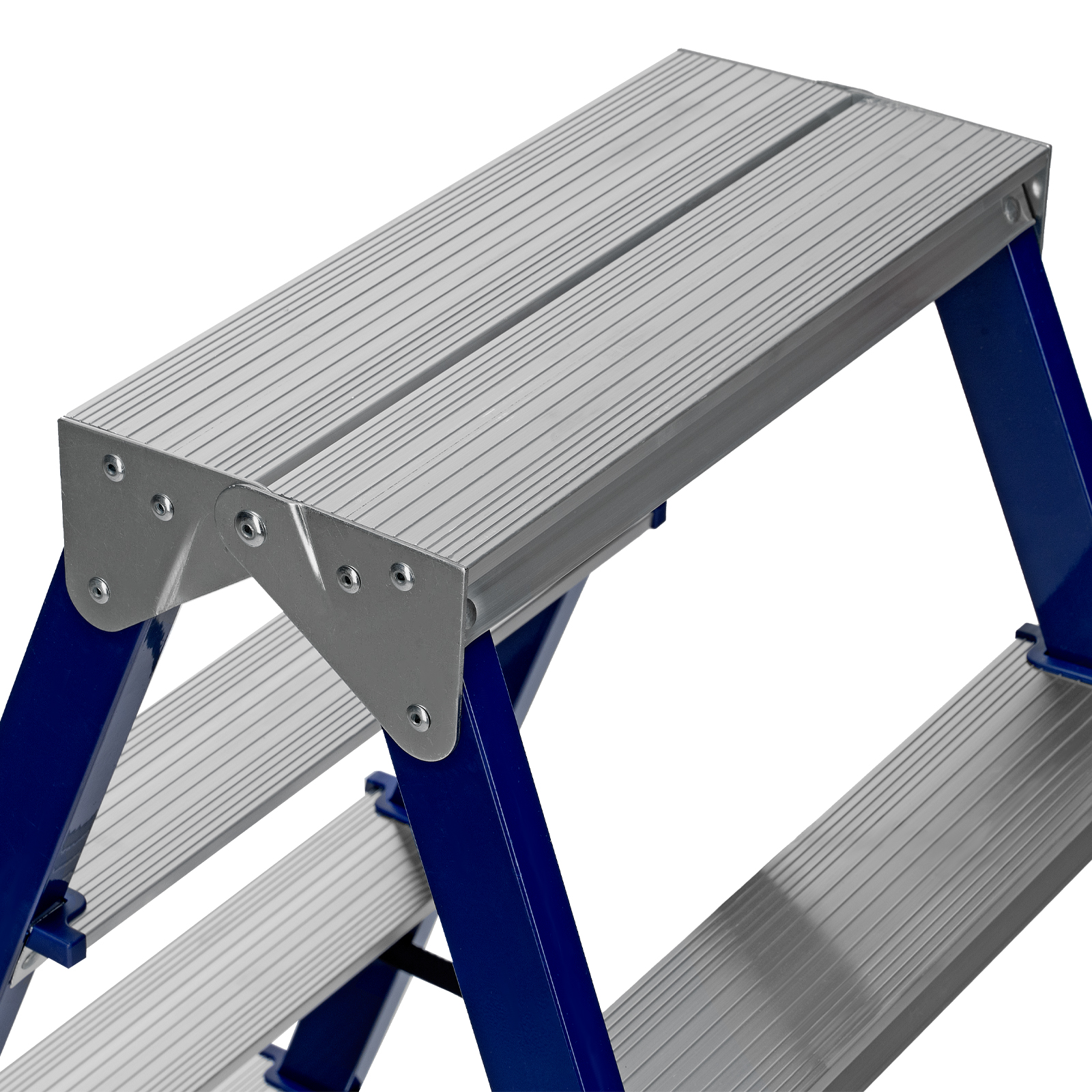 - Безопасность пользователя — широкие алюминиевые ступени не прогибаются, рифление на поверхности не дает поскользнуться.