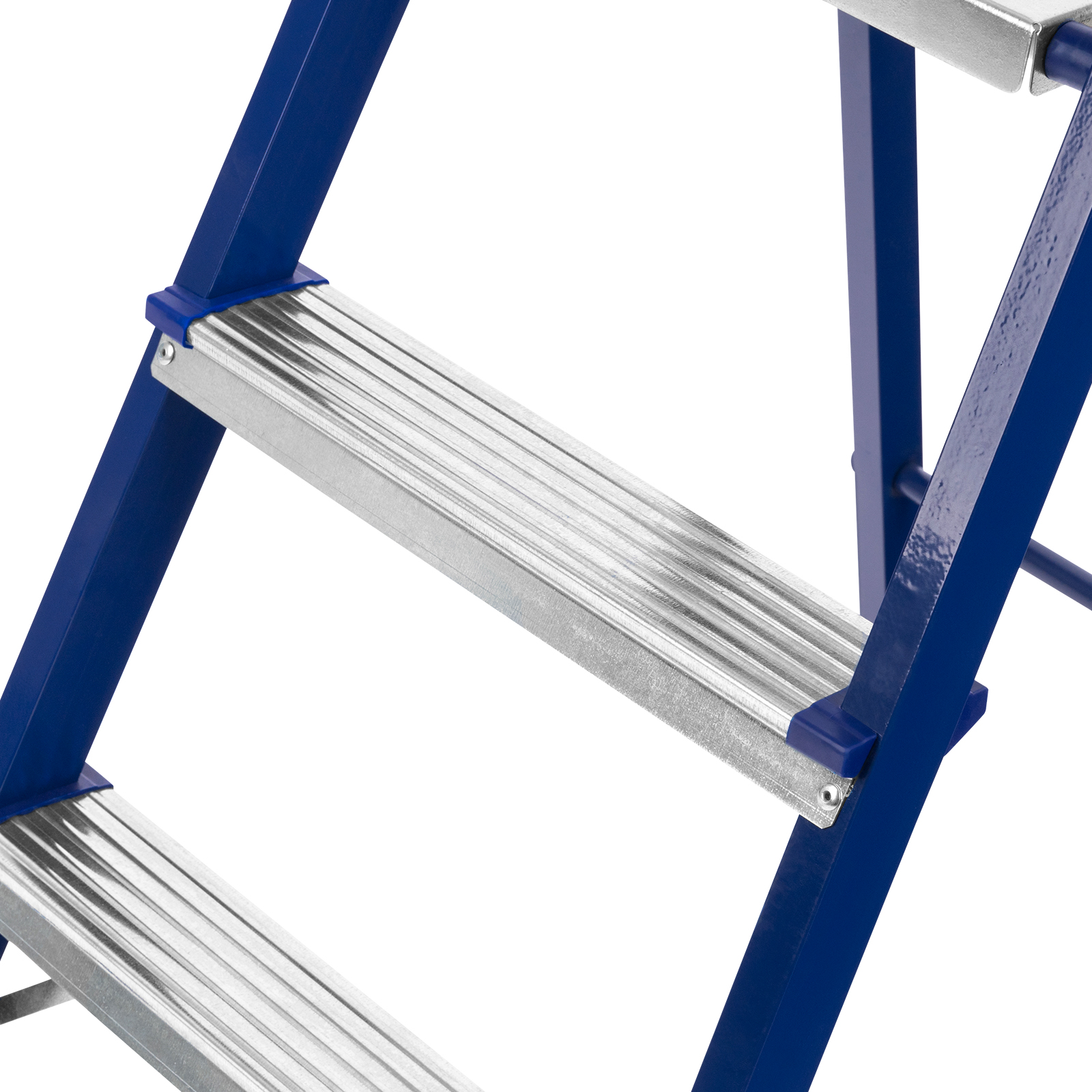 - Повышенная прочность — рама и ступеньки изготовлены из стали и выдерживают нагрузку до 150 кг.