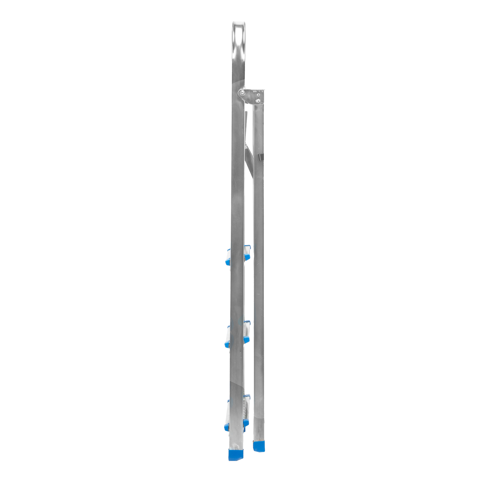 - Компактность и малый вес — лестница весит 4,3 кг, размеры в сложенном состоянии составляют 1280 х 415 х 105 мм, что удобно для хранения и транспортировки.