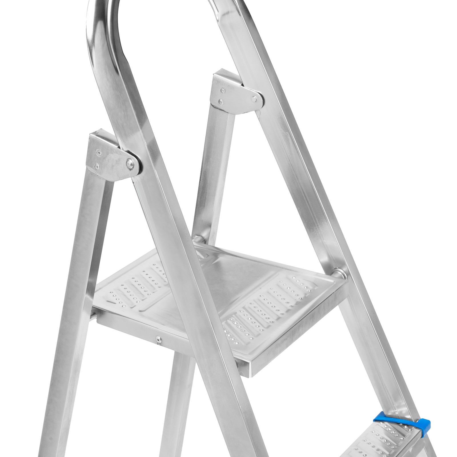 Стальная оцинкованная стремянка Сибртех 97836 с 4 ступенями позволяет повесить полку, картину или шкафчик, достать нужный предмет и решить другие задачи, для которых требуется доступ к предметам на высоте. Рама и ступени из стального профиля выдерживают вес до 120 кг. Расстояние от опорной поверхности до площадки составляет 76,5 см, при среднем росте пользователя 170 см рабочая высота лестницы — 276,5 см. Необходимо соблюдать технику безопасности: размещать стремянку только на ровной плоскости и не использовать ее для работы с дрелью, шуруповертом и другим электроинструментом.
