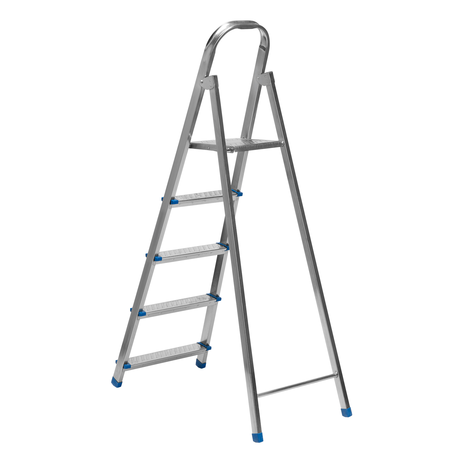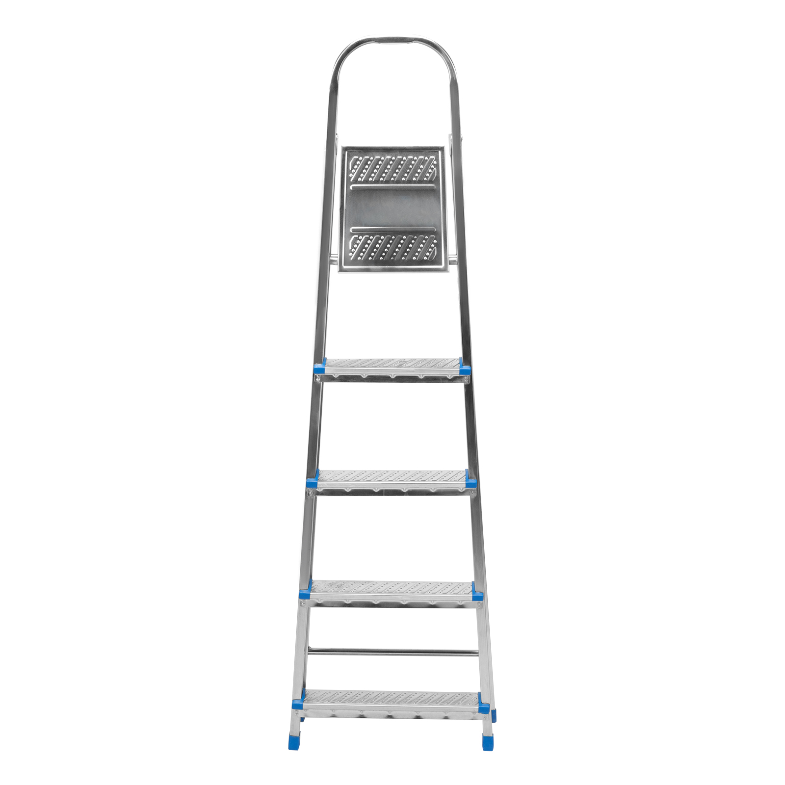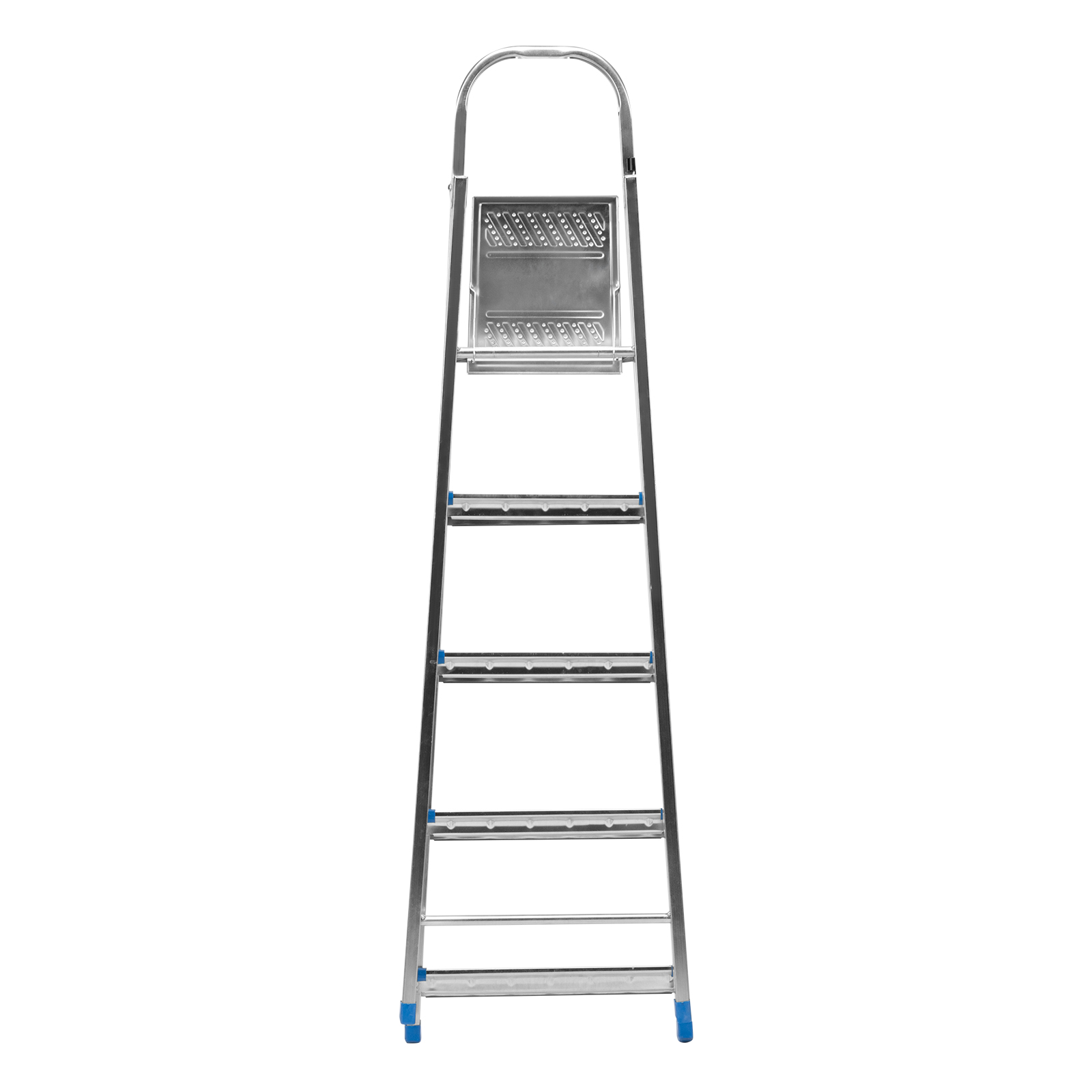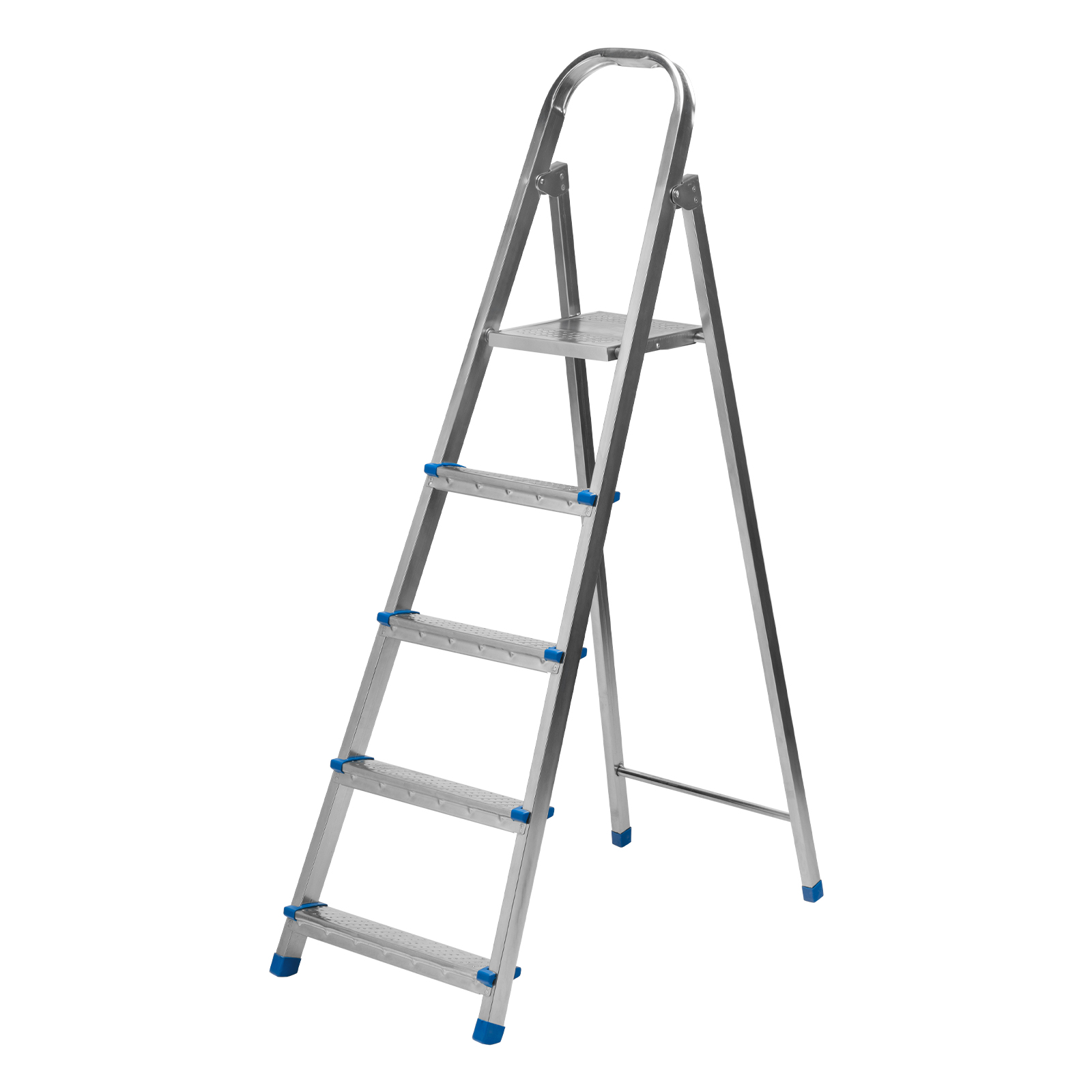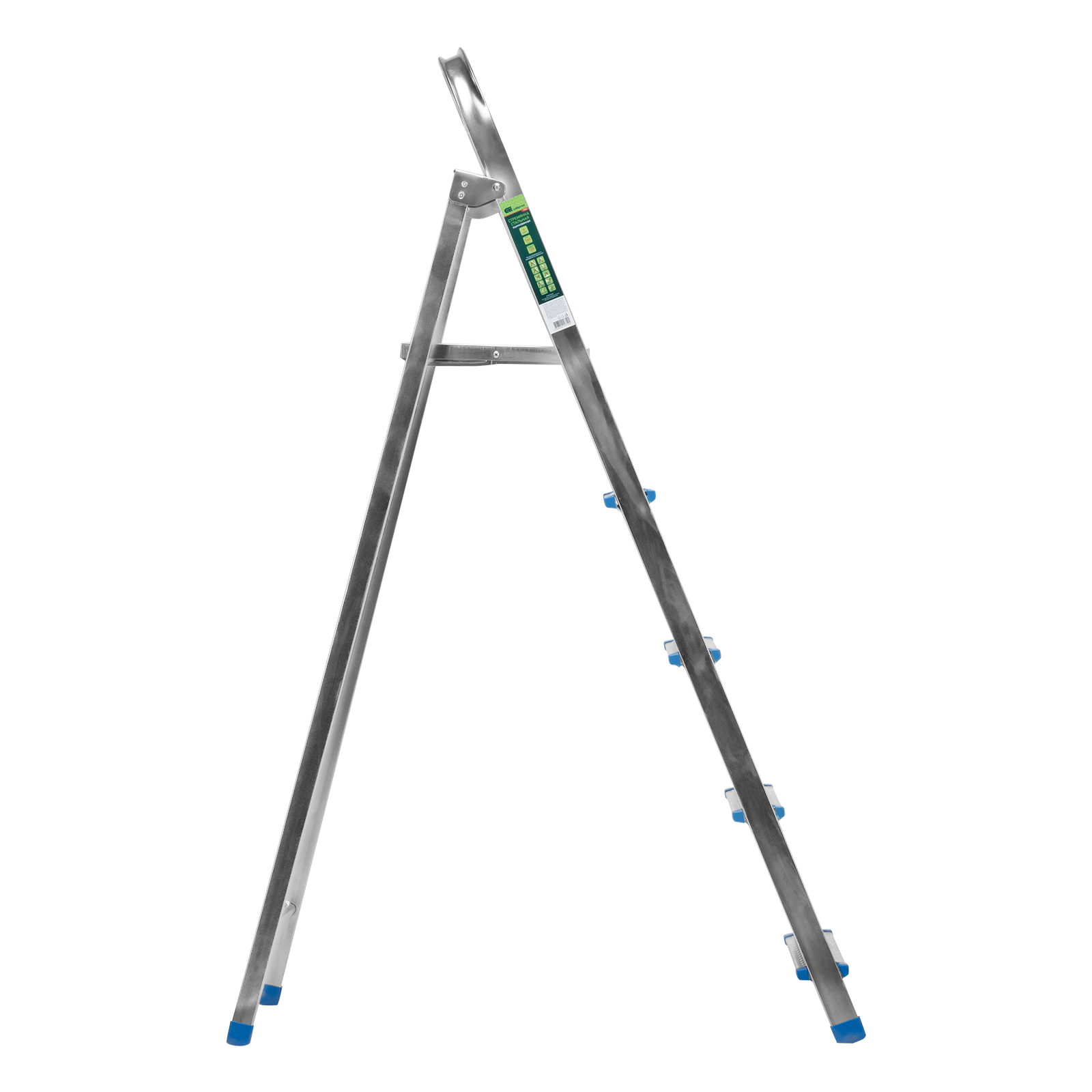 Стальная оцинкованная стремянка Сибртех 97837 с 5 ступенями позволяет повесить полку, картину или шкафчик, достать нужный предмет и решить другие задачи, для которых требуется доступ к предметам на высоте. Рама и ступени из стального профиля выдерживают вес до 120 кг. Расстояние от опорной поверхности до площадки составляет 99 см, при среднем росте пользователя 170 см рабочая высота лестницы — 299 см. Необходимо соблюдать технику безопасности: размещать стремянку только на ровной плоскости и не использовать ее для работы с дрелью, шуруповертом и другим электроинструментом.