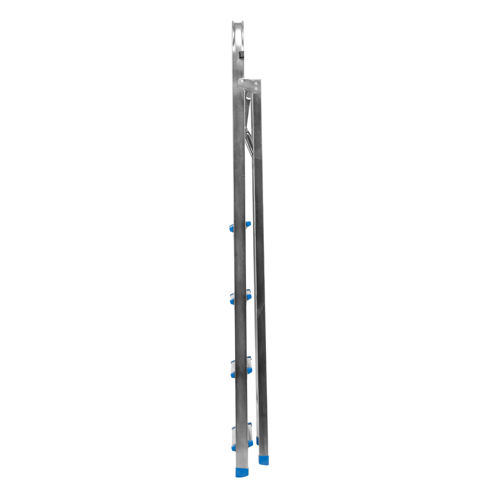 - Компактность и малый вес — лестница весит 5,1 кг, размеры в сложенном состоянии составляют 1520 х 445 х 105 мм, что удобно для хранения и транспортировки.