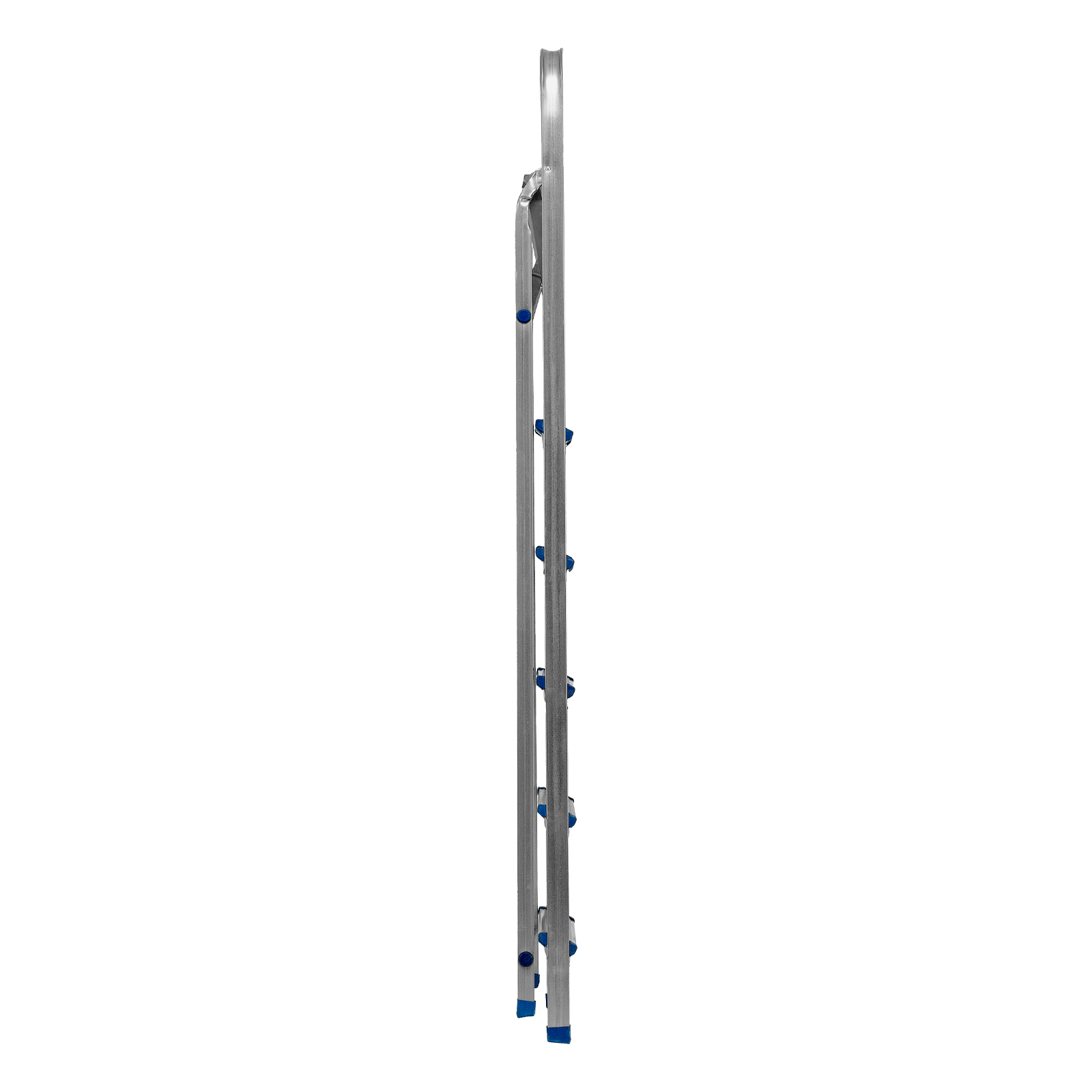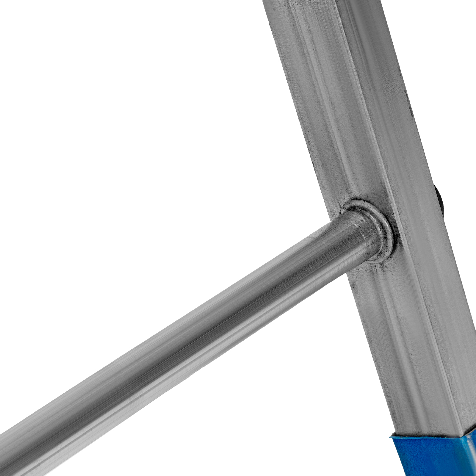 - Простая установка — на верхней площадке предусмотрены специальные зацепы для фиксации стремянки в разложенном состоянии.