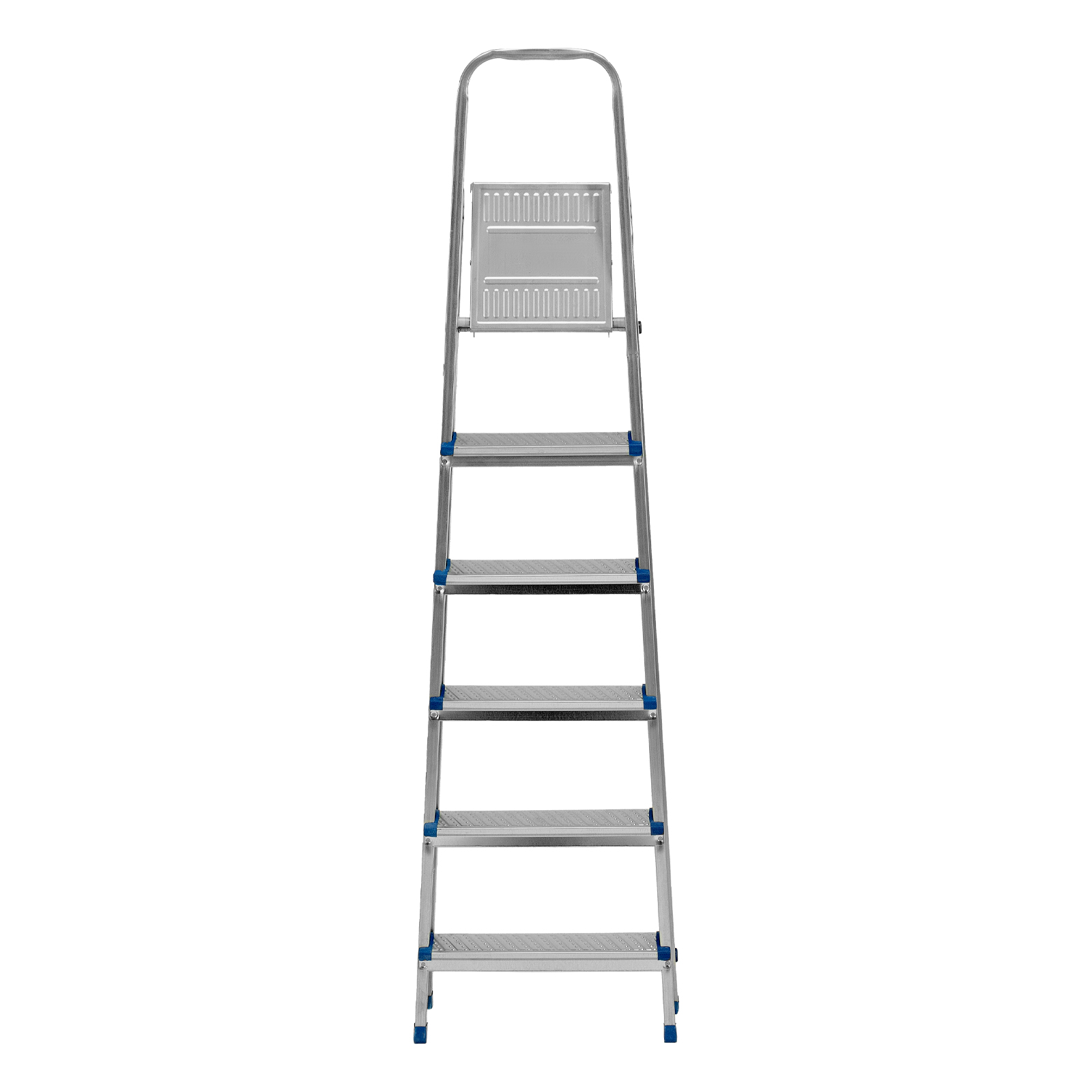 Стальная оцинкованная стремянка Сибртех 97838 с 6 ступенями позволяет повесить полку, картину или шкафчик, достать нужный предмет и решить другие задачи, для которых требуется доступ к предметам на высоте. Рама и ступени из стального профиля выдерживают вес до 120 кг. Расстояние от опорной поверхности до площадки составляет 121 см, при среднем росте пользователя 170 см рабочая высота лестницы — 321 см. Необходимо соблюдать технику безопасности: размещать стремянку только на ровной плоскости и не использовать ее для работы с дрелью, шуруповертом и другим электроинструментом.