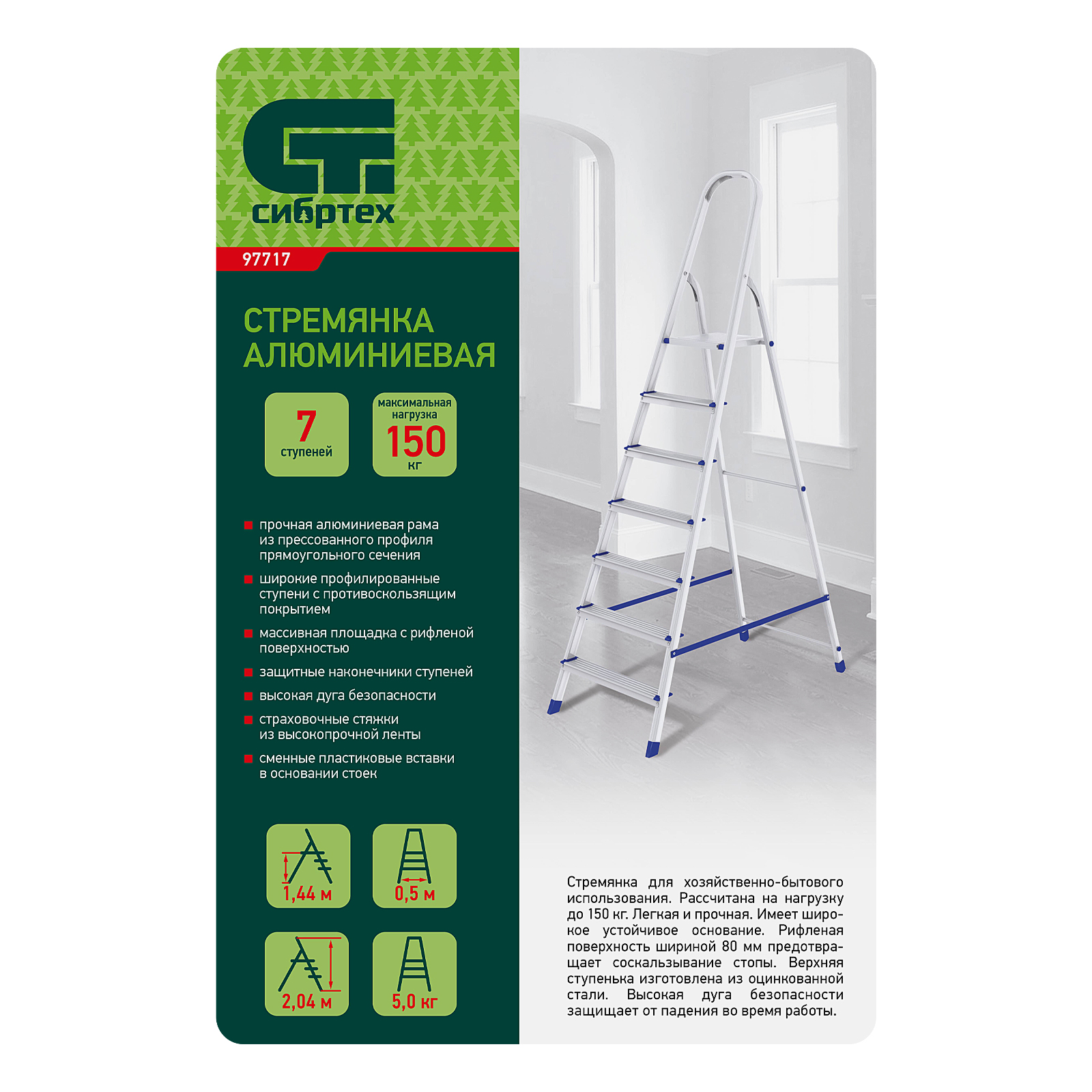 Стремянка, 7 ступеней, алюминиевая, Сибртех в Краснодаре