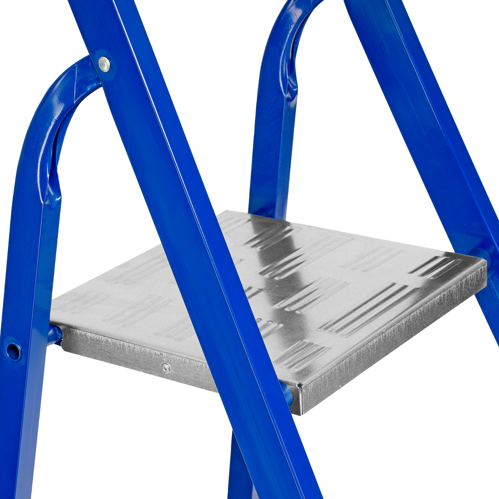 - Комфортная работа — стремянка имеет широкие ступени и высокую дугу безопасности.