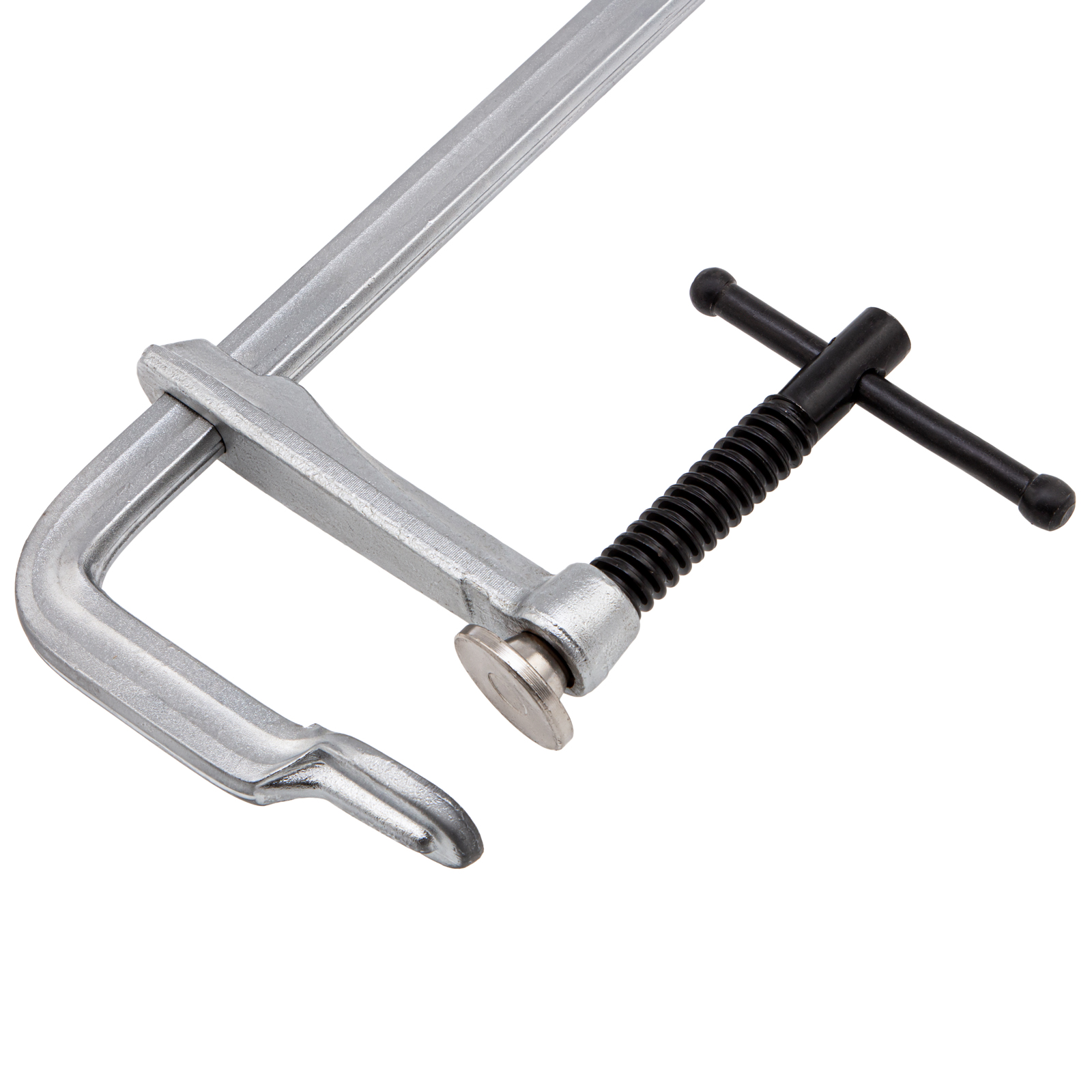 - Хромированное покрытие надежно защищает струбцину от коррозии.