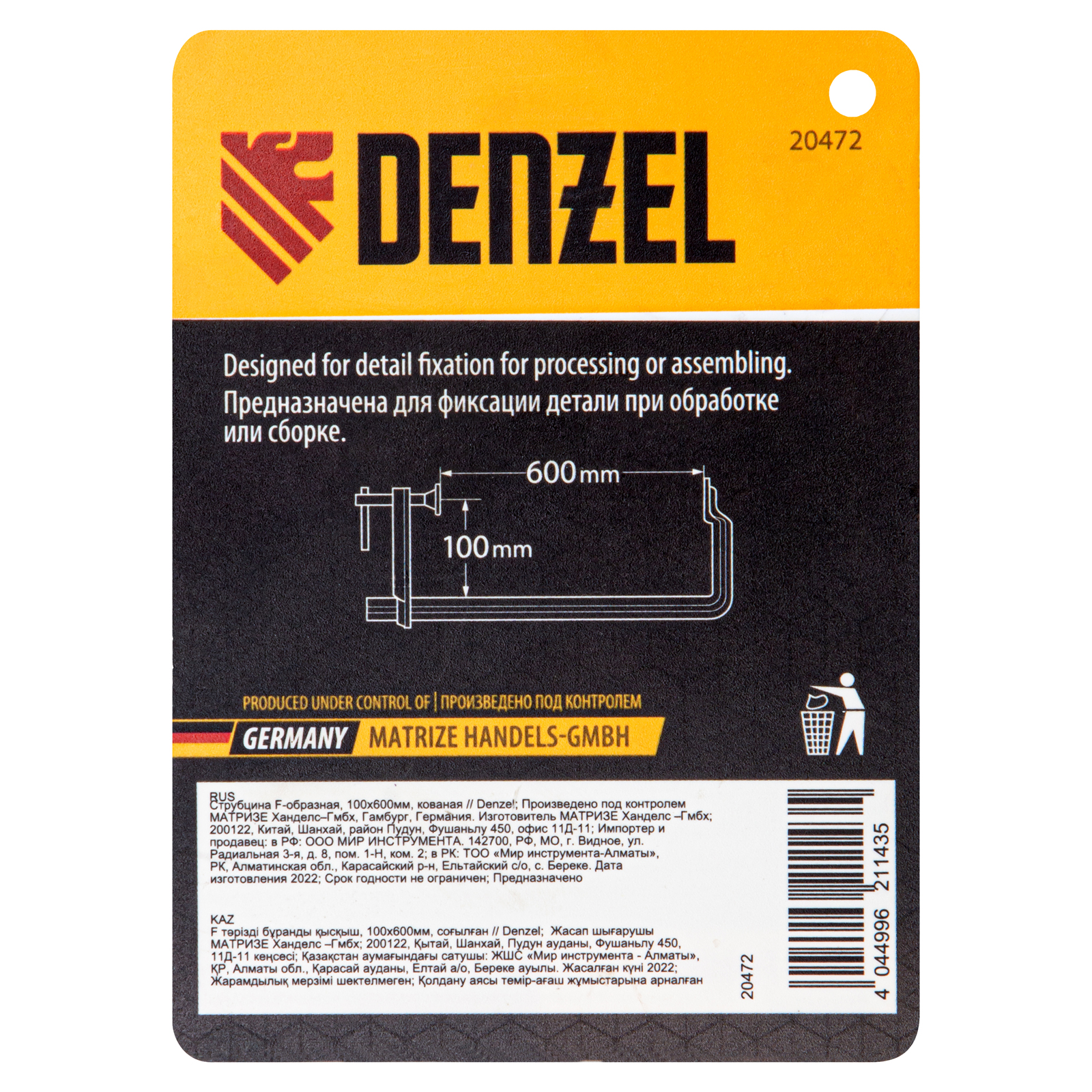 Струбцина F-образная, 100x600мм, кованая Denzel в Краснодаре