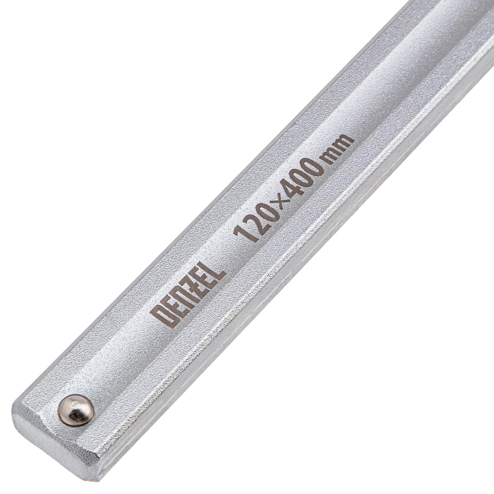 Кованая F-образная струбцина Denzel 20478 с глубиной зажима 120 мм, усиленная, предназначена для фиксации деталей шириной до 400 мм и материалов при проведении слесарных, столярных и сварочных работ. Тавровый профиль обеспечивает устойчивость конструкции к изгибу, что позволяет фиксировать детали со значительным усилием. Струбцина подходит для профессионального применения.