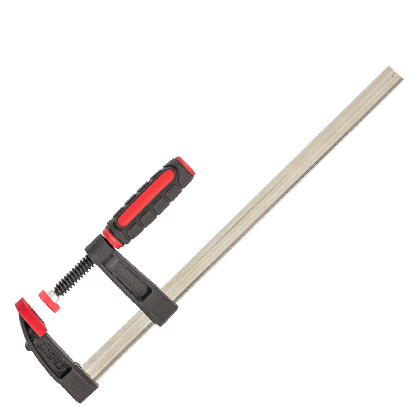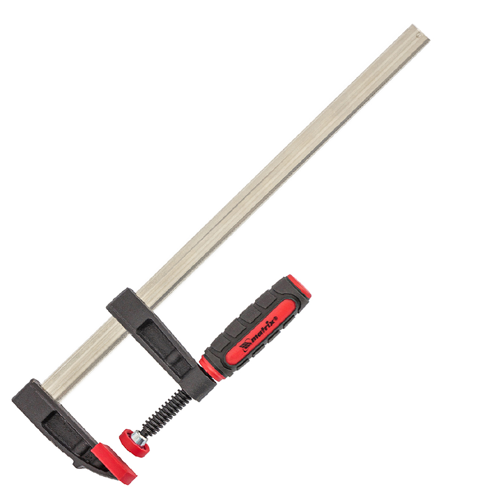 F-образная струбцина Matrix 20404 размером 250 х 50 х 310 мм используется для зажима металлических, деревянных и других заготовок для их последующей обработки или сборки. Представляет собой штангу, на которой установлено 2 кронштейна — неподвижный и подвижный. Деталь помещается между ними и прижимается к губкам при помощи винтового зажима с трапециевидной резьбой. Подвижный кронштейн позволяет регулировать величину захвата, которая может достигать 250 мм. Струбцину применяют для выполнения слесарных и столярных работ.