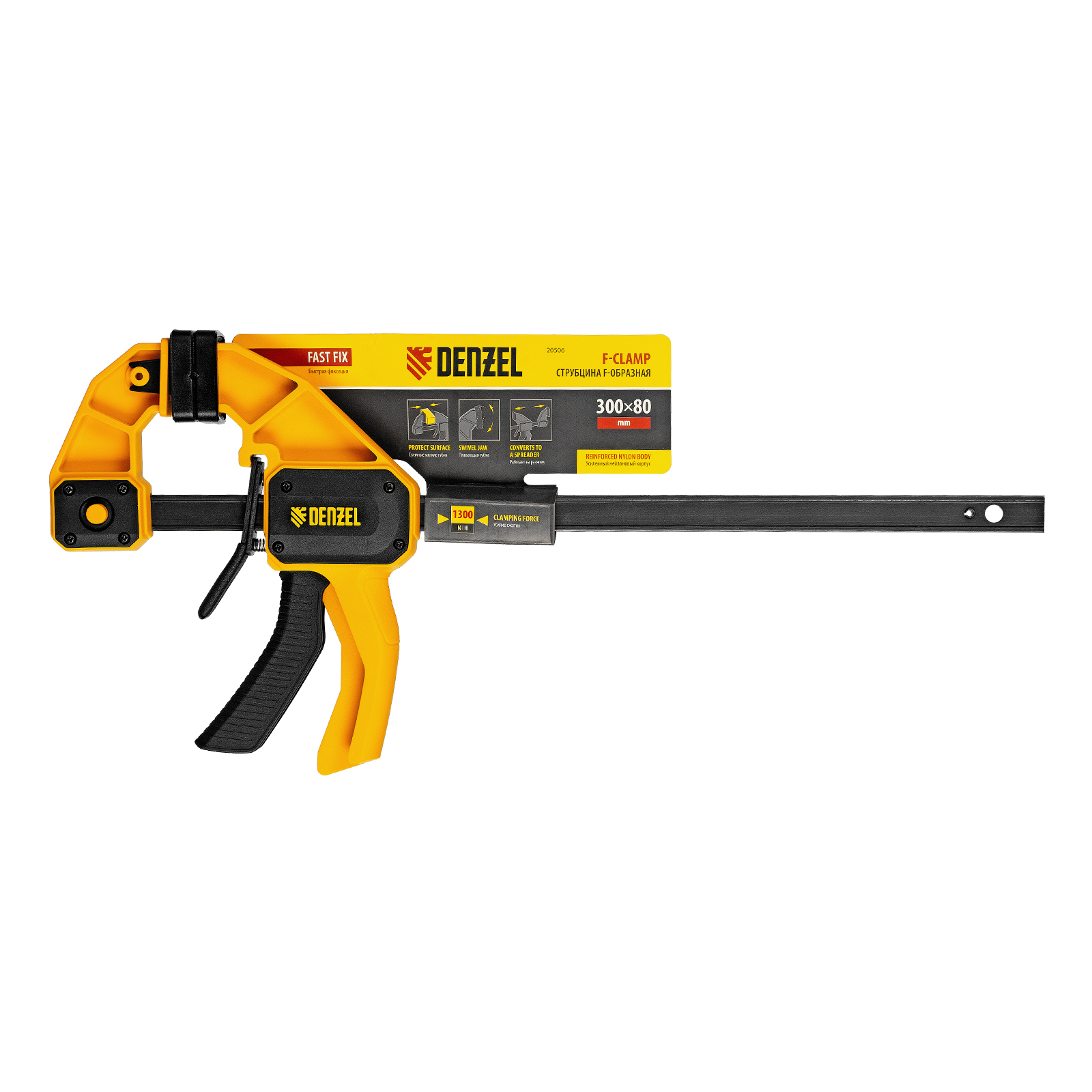 Струбцина F-образная, быстрозажимная, 300 х 80 мм, усиленный нейлоновый корпус Denzel в Краснодаре