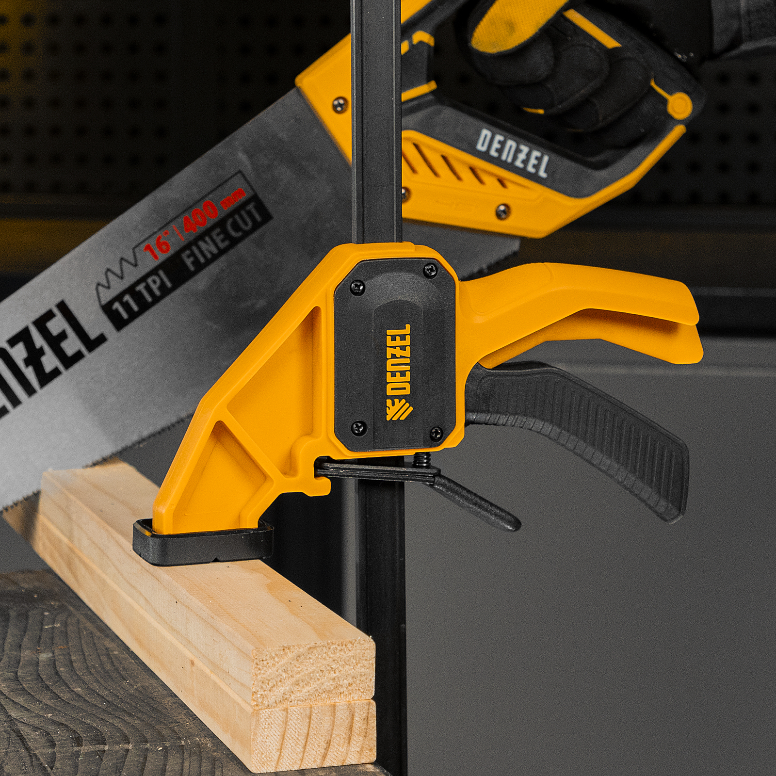 Струбцина F-образная, быстрозажимная, 600 х 80 мм, усиленный нейлоновый корпус Denzel в Краснодаре