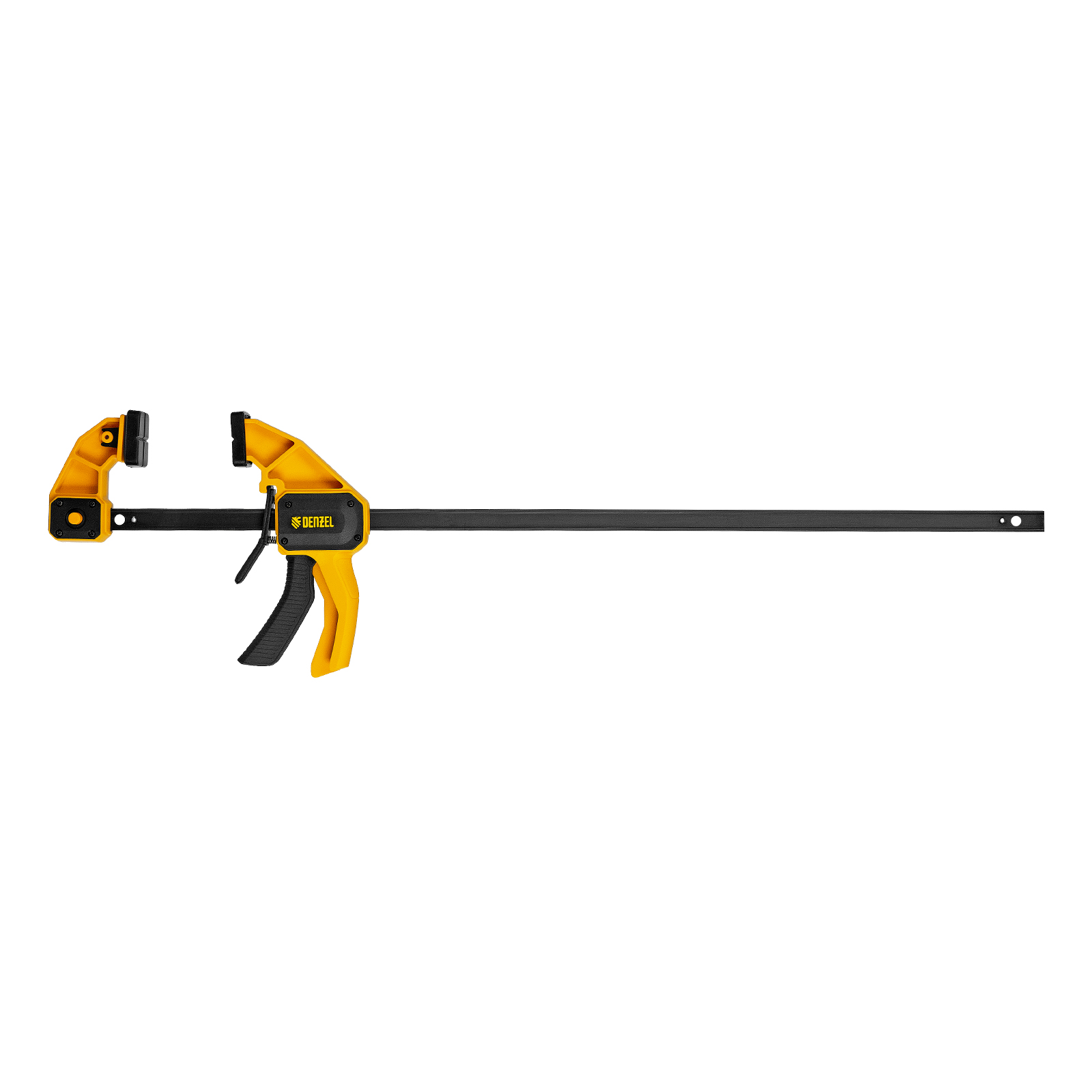 - Комфортное использование — струбцина весит всего 764 г, обрезиненная кнопка фиксации обеспечивает удобный захват.