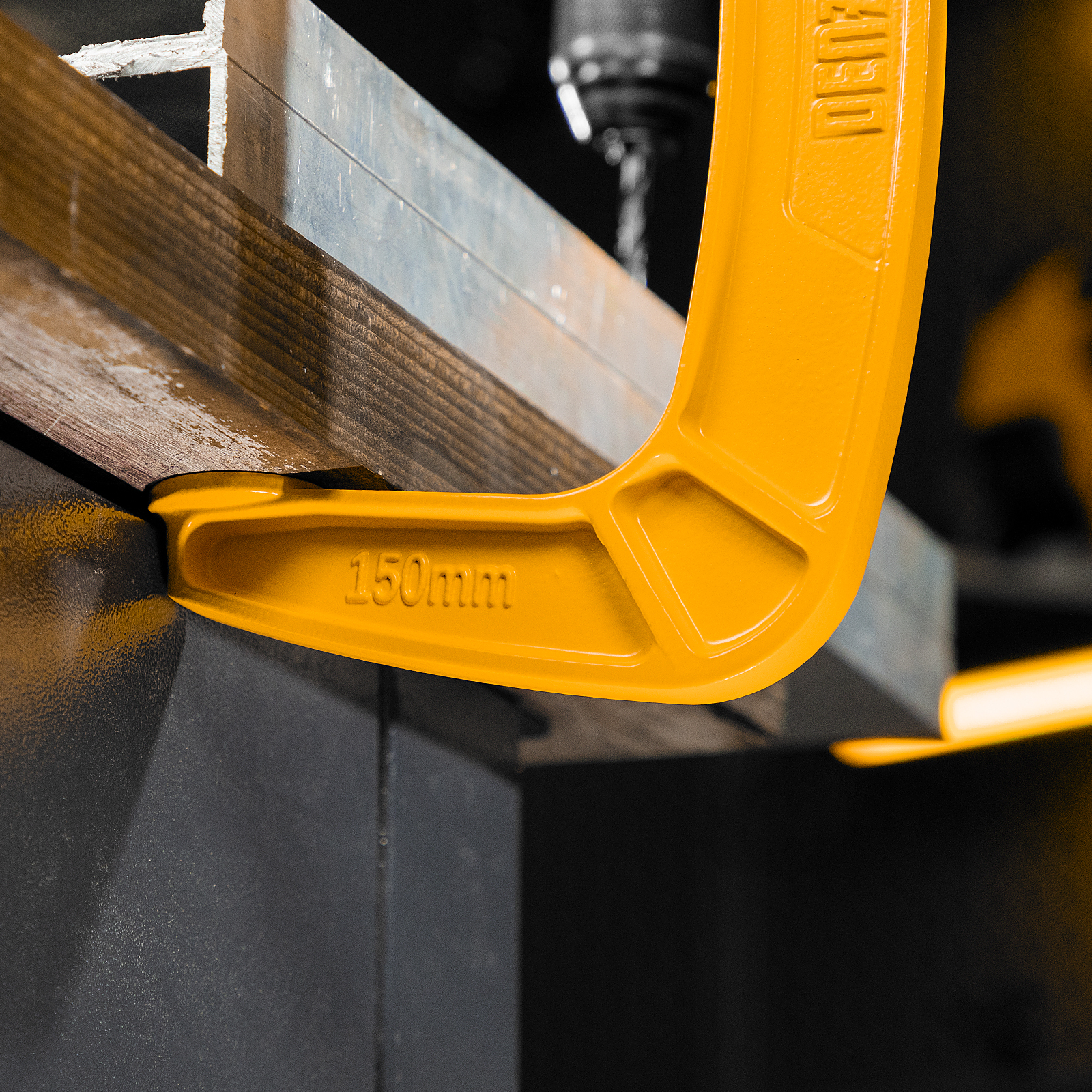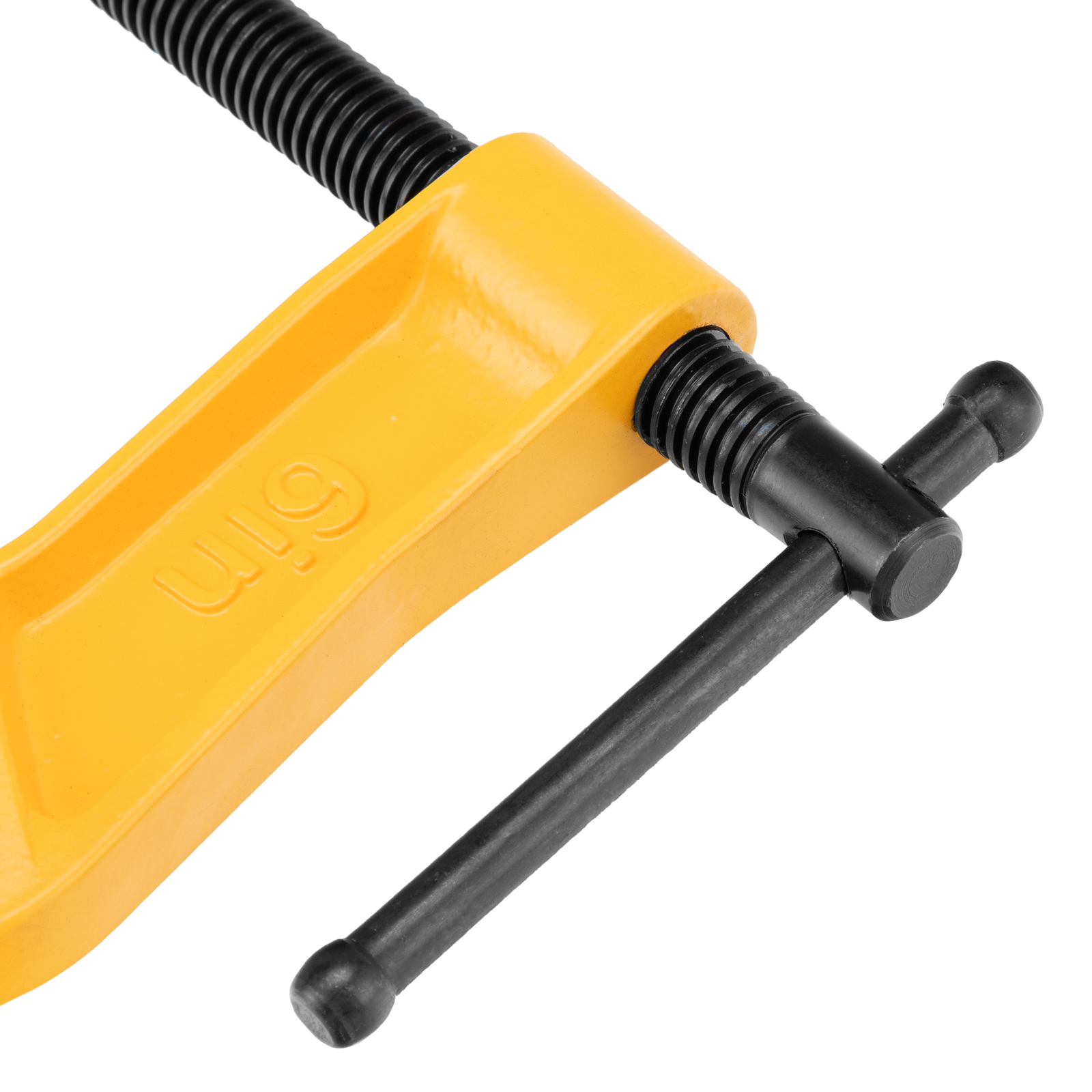 G-образная струбцина Denzel 20645 с максимальной шириной зажима 150 мм используется для фиксации заготовок или закрепления их на верстаке, станке или между собой. Позволяет склеивать детали, а также сверлить их, шлифовать, опиливать и проводить другие работы. Может использоваться во время выполнения сварочных работ. Винт с трапециевидной резьбой обеспечивает надежную фиксацию предметов. Струбцина применяется в слесарном и столярном деле, будет полезна также домашнем хозяйстве.