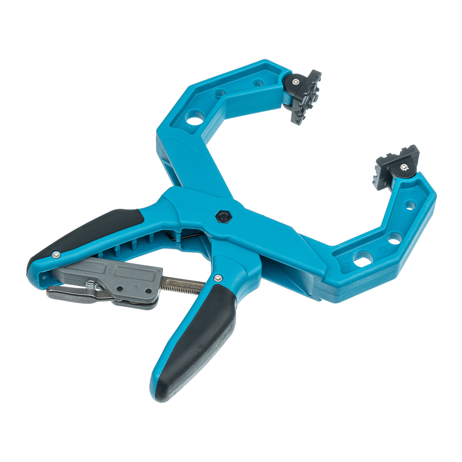 - Благодаря шарнирному креплению прижимных насадок сжимаемые детали можно устанавливать под разными углами.