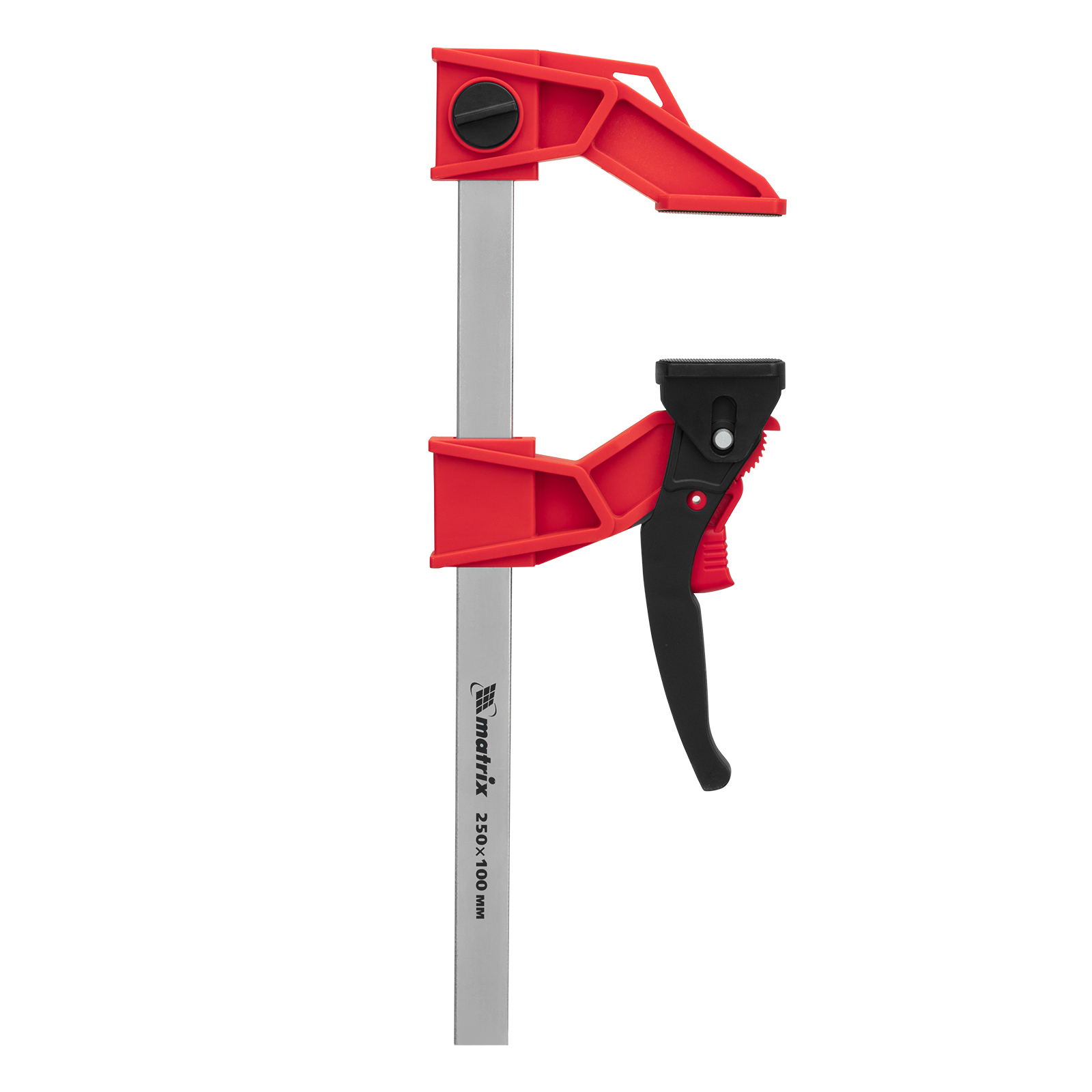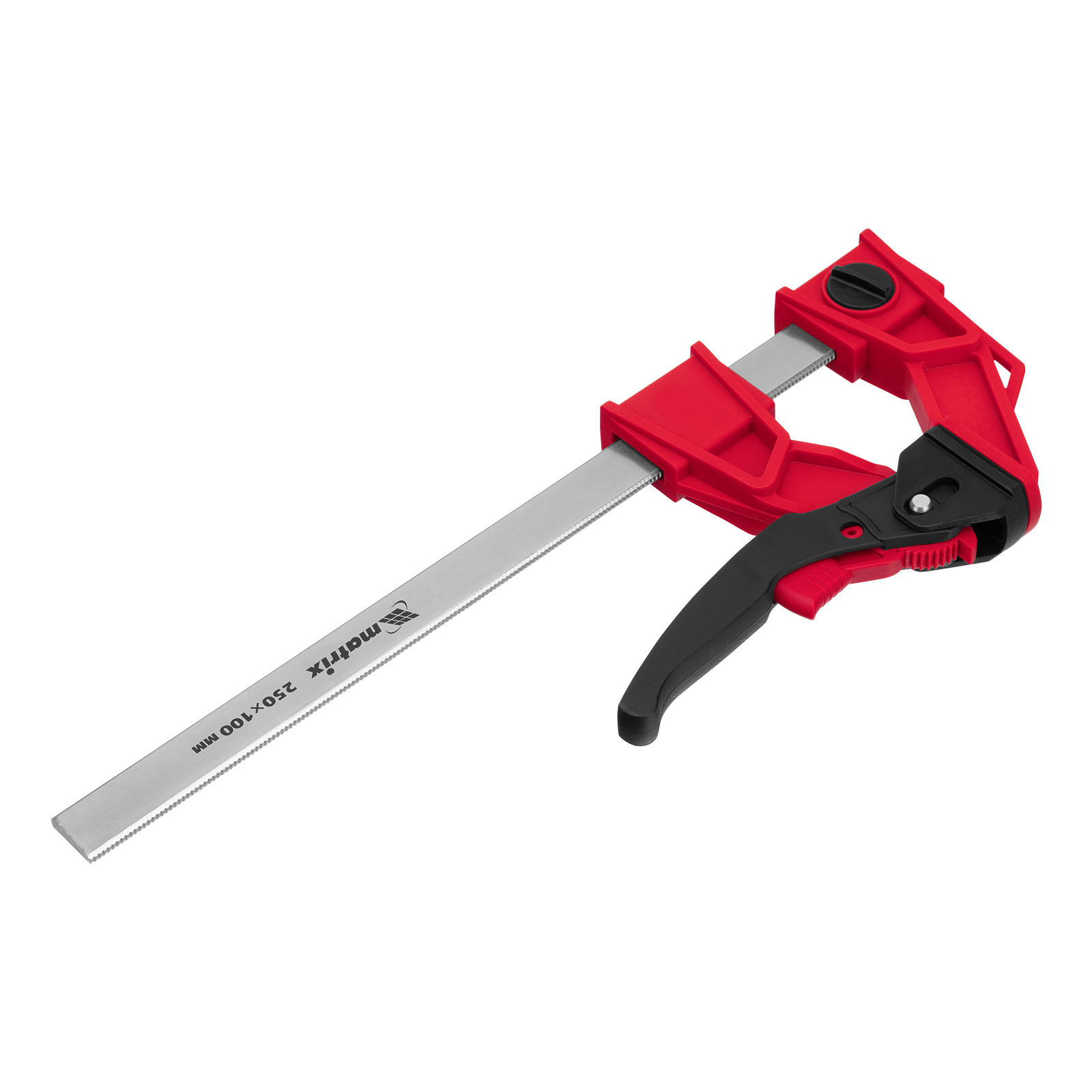 Струбцина реечная быстрозажимная, усиленная, пластиковый корпус рычажно-храповой механизм, 250 х 100 х 401 мм, штанга 5 х 22 мм Matrix в Краснодаре