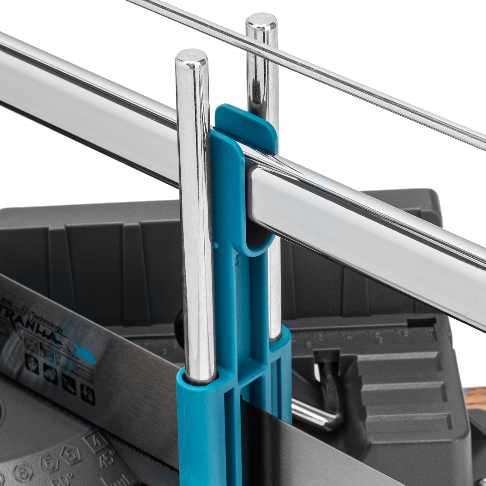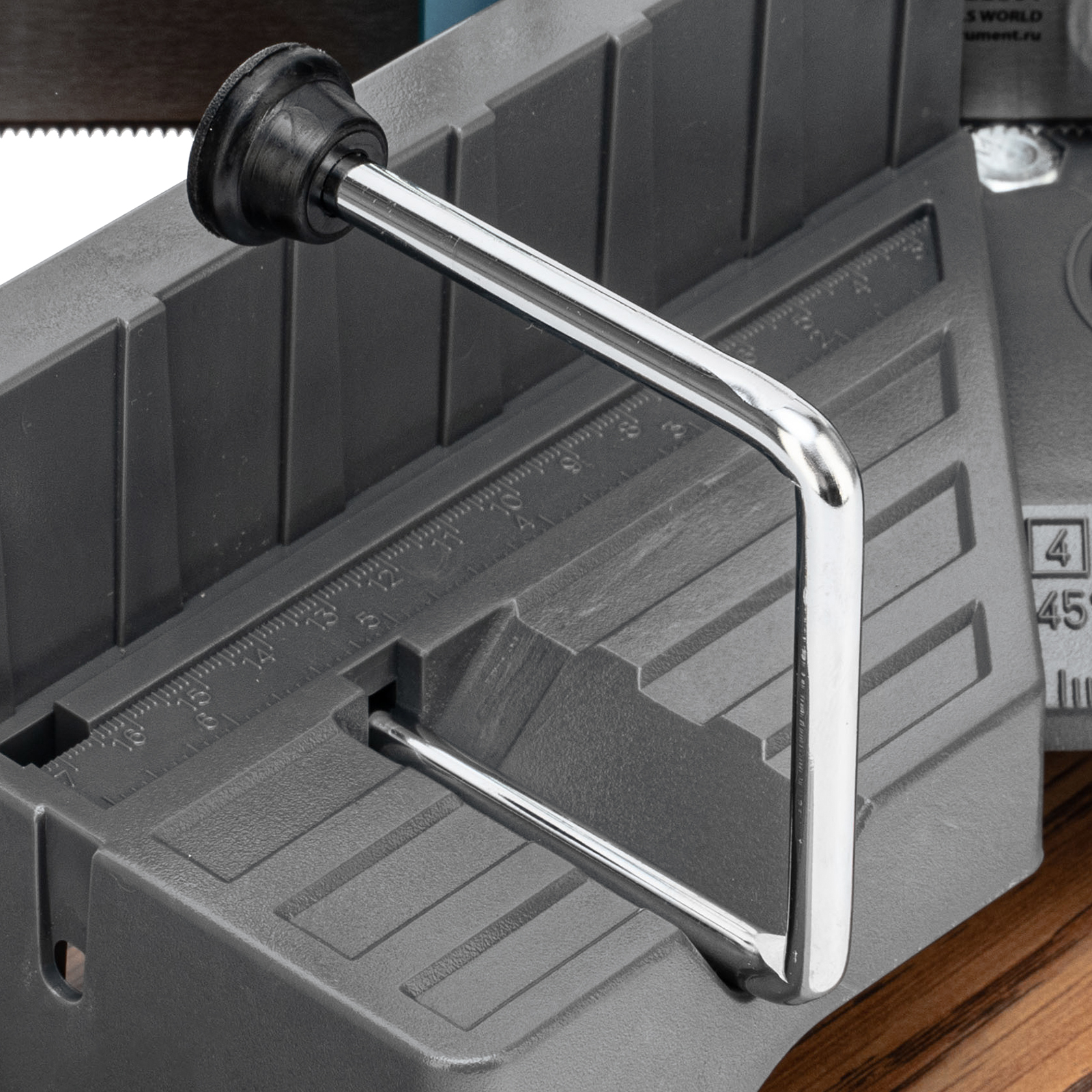 - Функциональность — прижимные струбцины надежно фиксируют заготовку, измерительные шкалы облегчают определение ее рабочей длины и угла распила.
