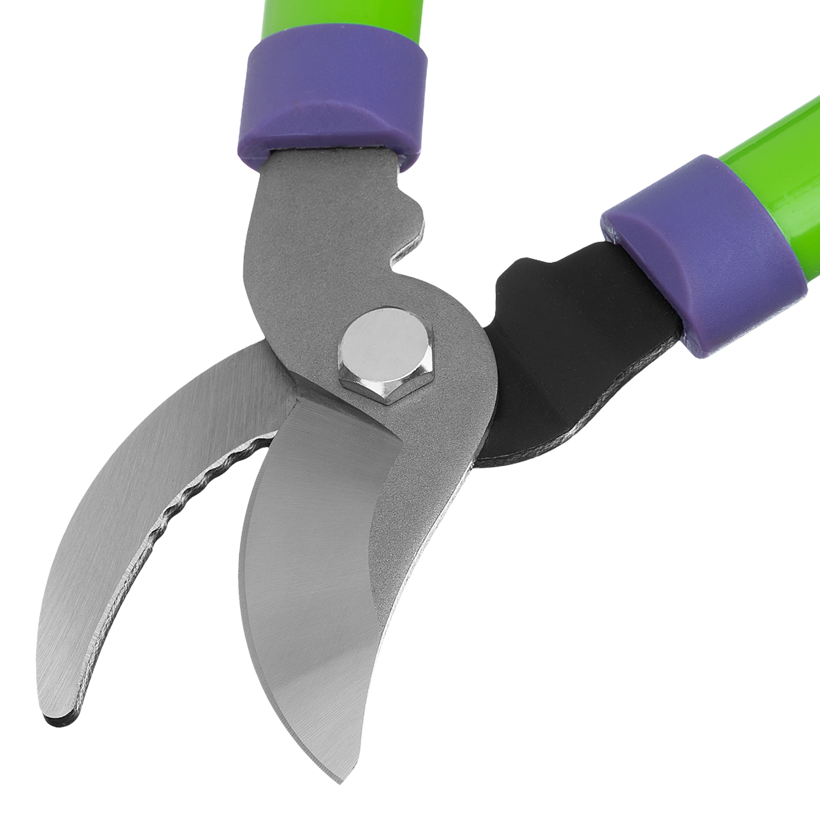 - Устойчивость к разрушению — тефлоновое покрытие режущего лезвия и порошковая эмаль на опорном лезвии и рукоятках защищают сучкорез от коррозии.