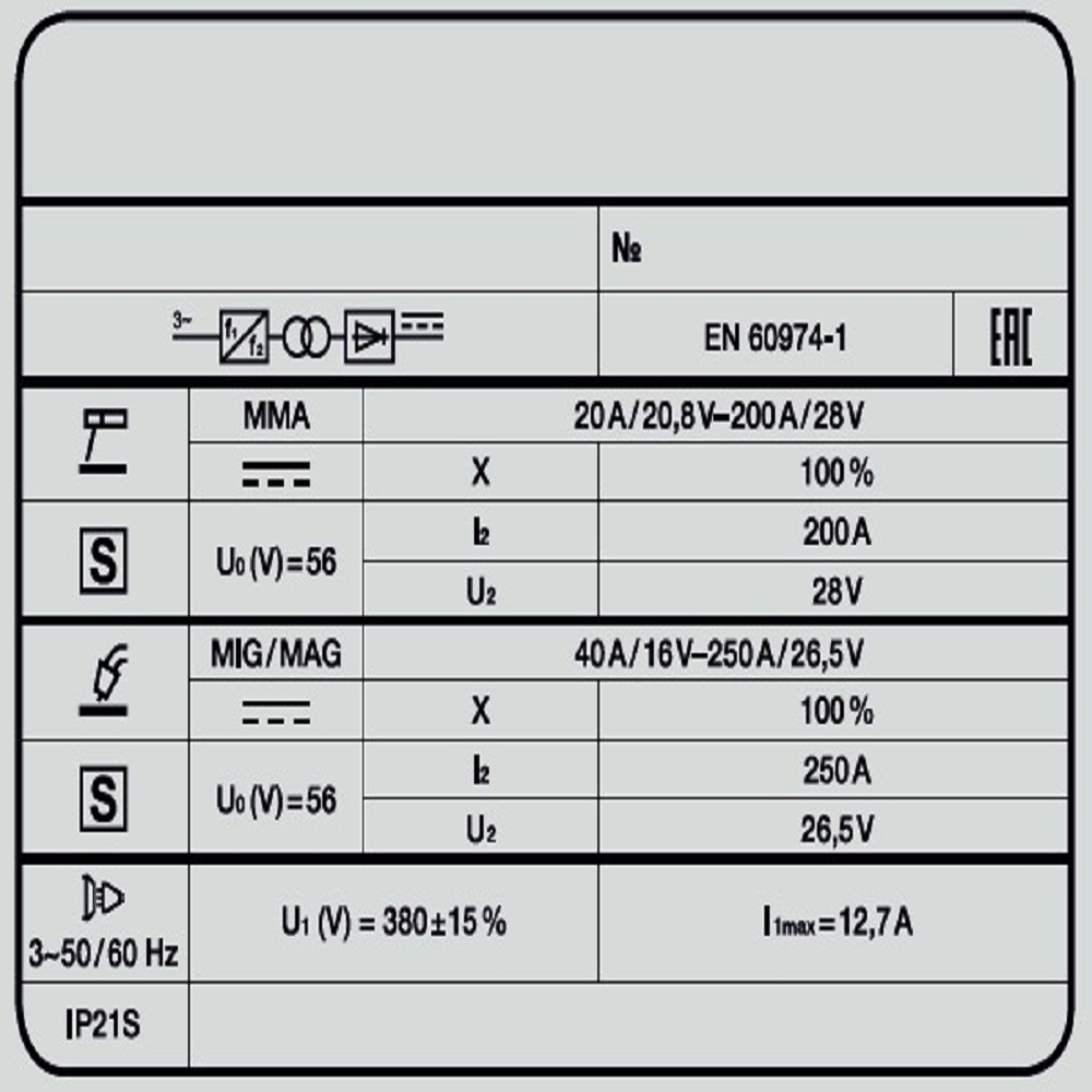 Сварочный полуавтомат FOXWELD INVERMIG 251 PWE — профессиональный промышленный трёхфазный инвертор, позволяющий производить сварку изделий из низкоуглеродистой и легированной стали. Аппарат позволяет проводить полуавтоматическую сварку сплошной проволокой в среде защитного газа MIG/MAG и порошковой проволокой без использования защитного газа, а также ручную дуговую сварку (MMA) штучными электродами. Регулировка индуктивности позволяет вести процесс сварки с минимальным разбрызгиванием металла и приспосабливать процесс к любому типу работ. Конструктивное исполнение сварочного аппарата позволяет промышленному предприятию получить готовый, полноценный сварочный пост благодаря комплекту транспортировочных колёс и раме с платформой для установки газового баллона. На верхней части корпуса сварочного аппарата расположена площадка со специальным прорезиненным покрытием для размещения и хранения инструментов, необходимых сварщику в процессе работы. INVERMIG 251 PWE предназначен для проведения авторемонтных работ, а также в отраслях по производству различных стальных конструкций.РАБОТА БЕЗ ОСТАНОВКИ: ПВ 100% на максимальном токе при КПД 85% обеспечивает бесперебойную устойчивую работу на протяжении всего трудового дня. На задней панели расположена розетка 36 В для подключения подогревателя газа, который необходим для защиты обледенения редуктора во время продолжительной работы.РЕГУЛИРОВКА ИНДУКТИВНОСТИ: С помощью ручной настройки индуктивности можно дополнительно регулировать сварочную дугу для формирования нужного сварного шва. Регулировка индуктивности позволяет вести процесс сварки с минимальным разбрызгиванием металла и приспосабливать процесс к любому типу работ.СВАРКА БЕЗ ЗАЩИТНОГО ГАЗА: Сварочный аппарат позволяет использовать самозащитную сварочную проволоку при полуавтоматической сварке. Самозащитная порошковая проволока даёт возможность проводить сварочные работы без газа, что упрощает процесс сварки даже для неопытного пользователя. Нет необходимости в применении защитного газа, тяжёлых и громоздких газовых баллонов.2 ЦИФРОВЫХ ДИСПЛЕЯ: На панели управления аппарата расположены 2 цифровых дисплея, отображающие значение тока и напряжения во время сварочного процесса, а также индикаторы сети и аварийной сигнализации термозащиты. 4 ручки позволяют регулировать силу сварочного тока в обоих режимах сварки, сварочное напряжение и индуктивность. С помощью кнопок можно менять режимы сварки и включать функцию протяжки проволоки.РАСШИРЕННАЯ КОМПЛЕКТАЦИЯ: Сварочная горелка, щиток сварщика, щётка, газовый шланг, регулятор расхода газа с подогревателем на 36 В, комплекты роликов и кабелей, тележка под баллон с транспортировочными колёсами – в комплекте есть всё для того, чтобы быстро приступить к работе.ПРЕИМУЩЕСТВА:Возможность сварки без газа самозащитной проволокойПолностью ручное управление, без влияния возможных погрешностей синергетикиТрёхфазное питание позволяет выдавать большую мощность аппаратам, с равномерной нагрузкой всех трёх линий электросетиПродолжительность работы при максимальном сварочном токе составляет 100% (ПВ 100%)Удобное и простое управление источником питанияПромышленное профессиональное решение для продолжительной и интенсивной работыХорошее соотношение стоимости сварочного апп