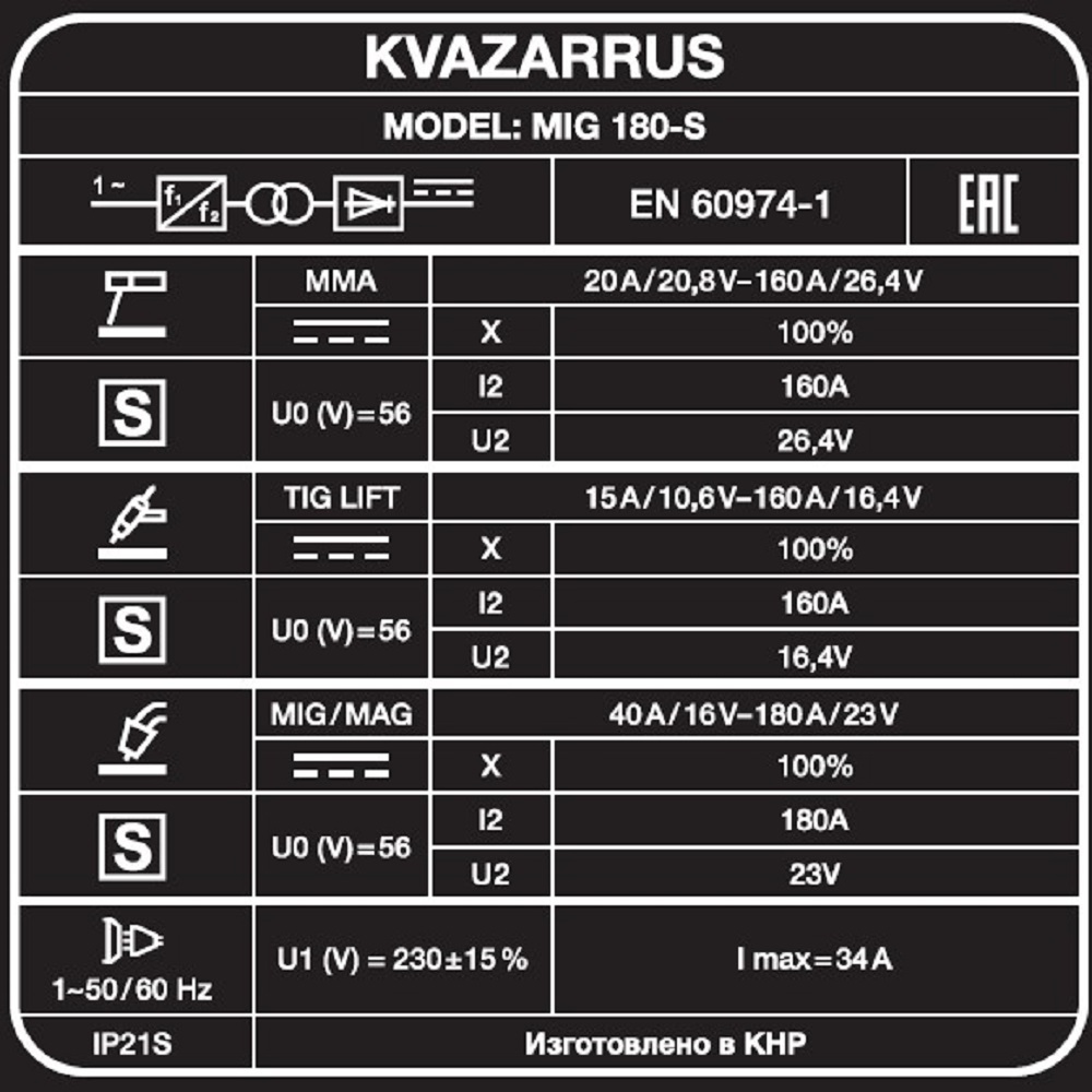 Сварочный полуавтомат KVAZARRUS MIG 180-S