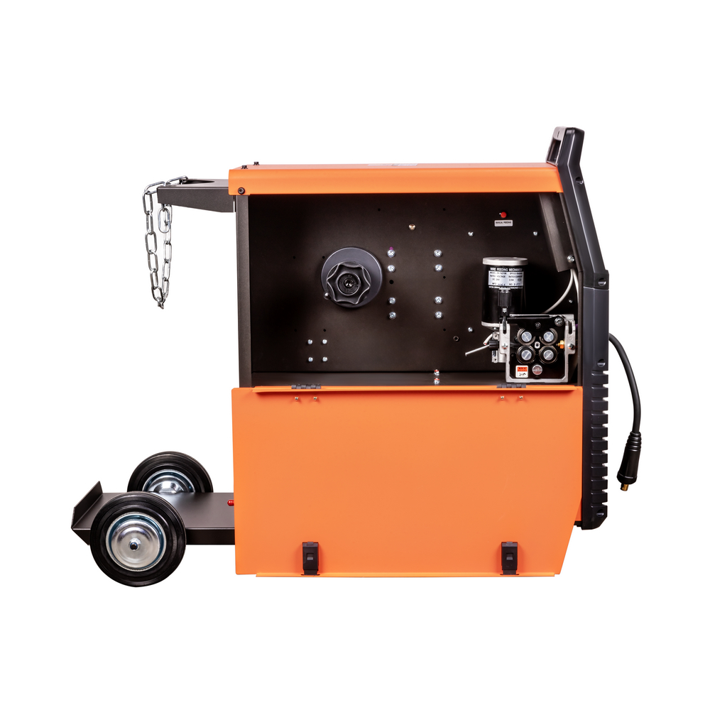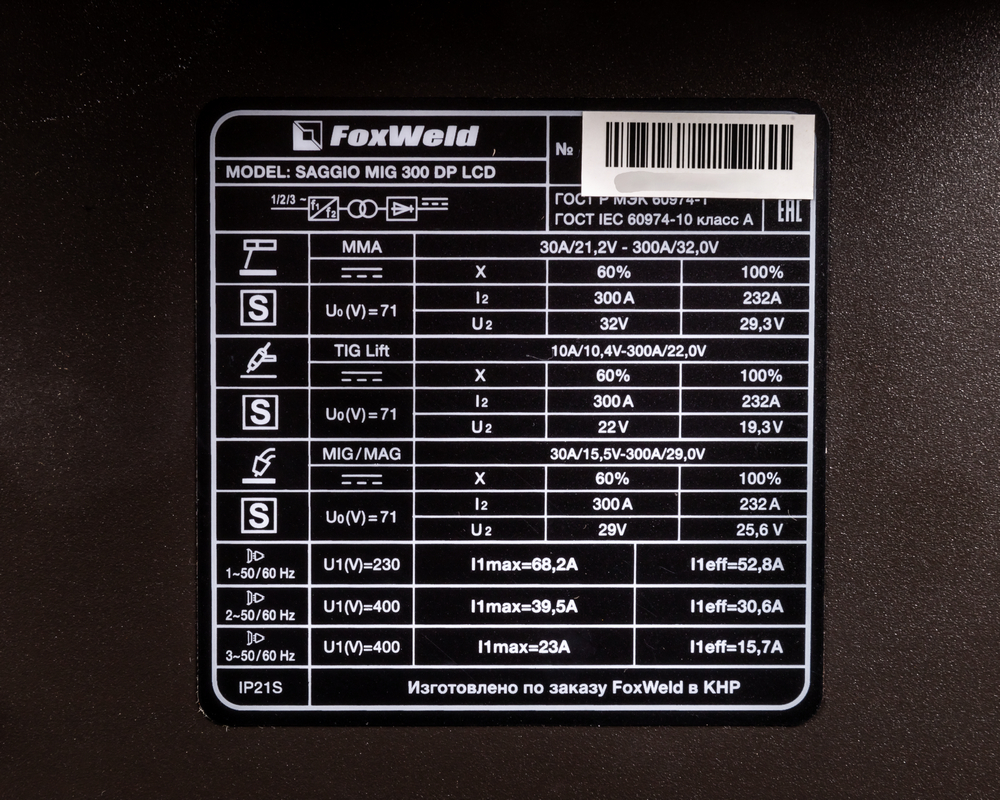 Сварочный полуавтомат SAGGIO MIG 300 DP LCD — это многофункциональный сварочный аппарат с полностью цифровым управлением, позволяющий производить сварку изделий из низкоуглеродистой и нержавеющей стали, а также алюминиевых сплавов. Наличие специальных сварочных процессов, импульсного и двойного импульсного режимов повышают качество и производительность сварки при решении технологически сложных производственных задач. Синергетическая система управление в режиме полуавтоматической сварки дает возможность систематизировать все сварочные параметры, осуществляя регулировку лишь одного из них - толщина металла. Режим сварки «Двойной импульс» позволяет получать сварные швы, равные уровню аргонодуговой сварки, за счёт контролируемого тепловложения в свариваемый металл. Импульсные процессы идеально подходит для сварки нержавеющей стали и алюминиевых сплавов. В режиме полуавтоматической сварки (MIG/MAG) есть режим сварки по времени «SPOT». Данная модель позволяет сохранять настройки установленных параметров сварки и воспроизводить их при необходимости. Большой жидкокристаллический дисплей (LCD) на панели управления облегчает процесс настройки аппарата, тем самым позволяя оптимизировать рабочее время сварщика. Тележка с колёсами для перемещения и местом для газового баллона повышает мобильность аппарата.МНОГОФУНКЦИОНАЛЬНОСТЬ 3-В-1: Благодаря своей многофункциональности, аппарат позволяет проводить следующие виды работ: полуавтоматическую сварку (MIG/MAG) сплошной проволокой в среде защитного газа, ручную дуговую сварку (ММА) на постоянном токе штучным электродом с рутиловым и основным покрытием, аргонодуговую сварку (TIG LIFT) на постоянном токе с возбуждением дуги касанием вольфрамового электрода.РЕЖИМ DOUBLE PULSE: При двойном импульсе скорость подачи проволоки меняется во время сварки в соответствии с заданными параметрами. Режим DOUBLE PULSE идеален для сварки нержавеющей стали и алюминия (также благодаря очищающему воздействию быстрых фронтов переключения), особенно тонких листов, на которых можно добиться уровня качества, равного аргонодуговой сварке (TIG), при этом производительность будет более высокой. В режиме DOUBLE PULSE можно регулировать длительность тока импульса и тока паузы, что позволяет дополнительно управлять внешним видом шва и уменьшать зону термического влияния. Сварка в режиме DOUBLE PULSE упрощает процесс сварки алюминия и его сплавов, а также нержавеющих сталей, обеспечивая высокий уровень надежности соединения.РАСШИРЕННЫЙ СИНЕРГЕТИЧЕСКИЙ РЕЖИМ УПРАВЛЕНИЯ: Синергетическое управление дает возможность модифицировать все сварочные параметры, осуществляя регулировку лишь одного из них. Наличие синергетического режима управления позволяет легко и быстро настроить аппарат под любую задачу. Преимущества синергетики: простота в настройке даже неквалифицированным персоналом, быстрая установка сварочных параметров, гарантированное получение качественного сварного соединения. Синергетику можно отключить для работы в ручном режиме.4-РОЛИКОВЫЙ МЕХАНИЗМ ПОДАЧИ: 4-роликовый механизм подачи проволоки обеспечивает стабильную подачу присадочного материала, что способствует получению качественного результата. 4-роликовый механизм подачи сварочной проволоки позволяет подавать проволоку в область сварки без рывков и про