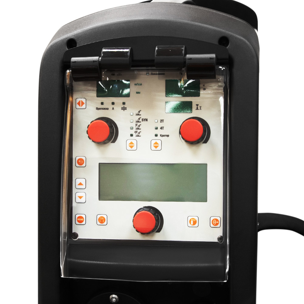 Сварочный полуавтомат FOXWELD WECO MIG 507 AC/DC DP TF — многоцелевой многофункциональный аппарат 7в1, идеальное решение для задач малого и среднего производства.  Модель WECO MIG 507 AC/DC DP TF охватывает все области применения: учебные центры, машиностроение, авиастроение, нефтехимия, промышленность. Полноценный аргонодуговой аппарат TIG AC/DC в едином исполнении со сварочным полуавтоматом MIG позволит сократить время на обучение персонала, освободить пространство в рабочей зоне и быстро выполнять различные проекты. Выполнив сложную сварку корня шва в режиме TIG, ускорьте производительность, используя режим MIG со специальными функциями и синергетикой для заполнения разделки.Аппараты FoxWeld серии WECO собрали в себе опыт разработки и эксплуатации профессионального сварочного оборудования, начиная с 1998 г. Все аппараты линейки WECO разрабатываются и производятся в Италии на заводе Corso Noblesville. Высокое качество производства и надежность наших аппаратов позволяют обеспечивать расширенную гарантию на всю линейку FoxWeld серии WECO.ФУНКЦИЯ POWER FOCUS: Концентрация дуги POWER FOCUS позволяет сварщику сфокусировать высокую температуру дуги в центральной части сварочной ванны, избегая таким образом перегрева кромок. Это новая технология сварки деталей из углеродистой стали используется, когда требуется глубокий провар в сочетании с высокой производительностью. Сфокусированная дуга позволяет делать меньшее число проходов для заполнения стыковых швов.ФУНКЦИЯ POWER ROOT: Функция вместе с синергетическими программами оптимизирует холодно-капельный перенос металла для получения высокого качества сварки корневого шва углеродистых и нержавеющих сталей, в том числе аустенитных. Технология обеспечивает улучшенную форму шва при сварке тонких деталей и при выполнении вертикальных швов с большим зазором.ФУНКЦИЯ HIGH CONTROL: Новая система High Control (Pulse НС) отличается эффективным контролем дуги для оптимизации отрыва капель при максимально сниженной мощности источника. Благодаря работе этой системы сварочная дуга становится более стабильной, не образуются брызги и наплывы, появляется отзывчивость к движению горелки, снижается тепловложение и происходит оптимальное оплавление кромок детали.РЕЖИМ HSL: Этот режим сварки стали и цветных металлов отличается очень короткой и интенсивной дугой, что позволяет достигать стабильного горения сварочной дуги без повышенного напряжения. Благодаря этому процессу не происходит перегрева и усадочной деформации основного материала, как следствие изделие имеет лучшие механические свойства.WECO HAC: Уникальная система WECO HAC (Hybrid Arc Control) обеспечивает плавную и очень стабильную сварочную дугу с превосходных качеством сварного шва и минимальным разбрызгиванием в любых условиях работы. Эта функция подходит для работ в вертикальном и потолочном положении и обеспечивает хорошее проплавление кромок, низкий нагрев и малую деформацию основного металла.ПРЕИМУЩЕСТВА:Сварочные процессы: MIG/MAG (SYNERGY, PULSE, DOUBLE PULSE), TIG AC/DC (полноценный со всеми настройками), MMA, GOUGINGСпециальные функции в режиме MIG/MAG: POWER FOCUS, POWER ROOT, HIGH CONTROL, HSLСпециальные функции в режиме TIG: Q-START, Q-SPOT, DYNAMIC ARC, MULTITACK, MIX AC/DC, EXTRA FUSION, BALANCE AC5 функций в режиме MMA: Hot Start, Arc Force, AntiSticking, DYNAMIC ARC, VRDВозможность подключения двух механизмов подачи (опционально)Расширенная синергетика для режимов TIG и MMAВозможность отклю