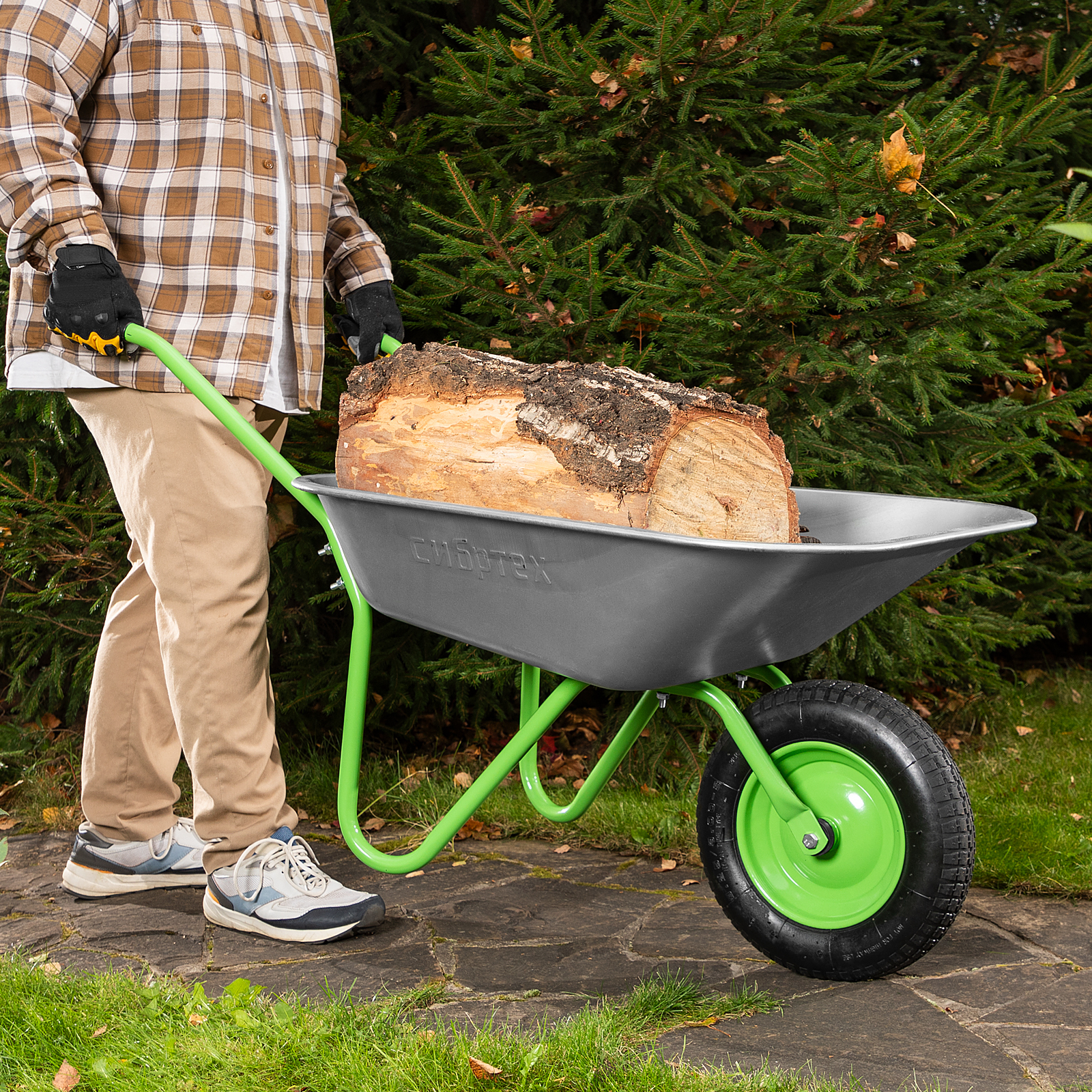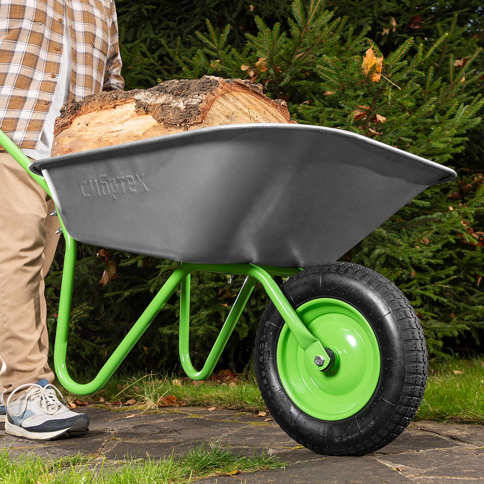 - Мобильность —благодаря небольшому весу 7 кг и колесу на двух шариковых подшипниках даже нагруженную тачку легко перемещать.