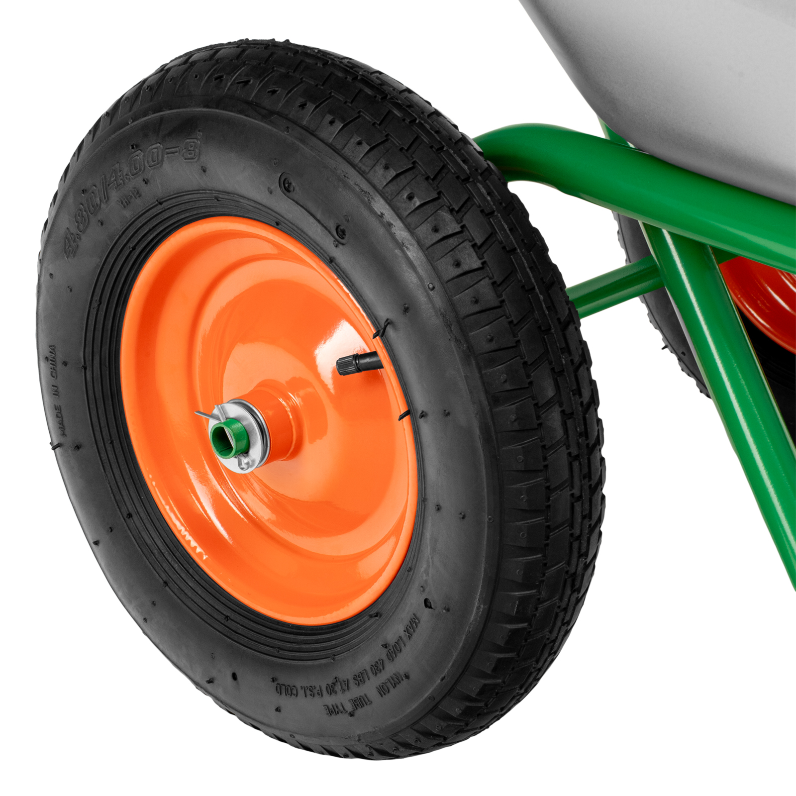 Усиленная двухколесная садово-строительная тачка Palisad 68923 грузоподъемностью 320 кг, с объемом кузова 120 л, облегчает перемещение удобрений, инвентаря, сыпучих смесей и прочих грузов. Повышает эффективность работы, будет полезна на строительной площадке и загородном участке.