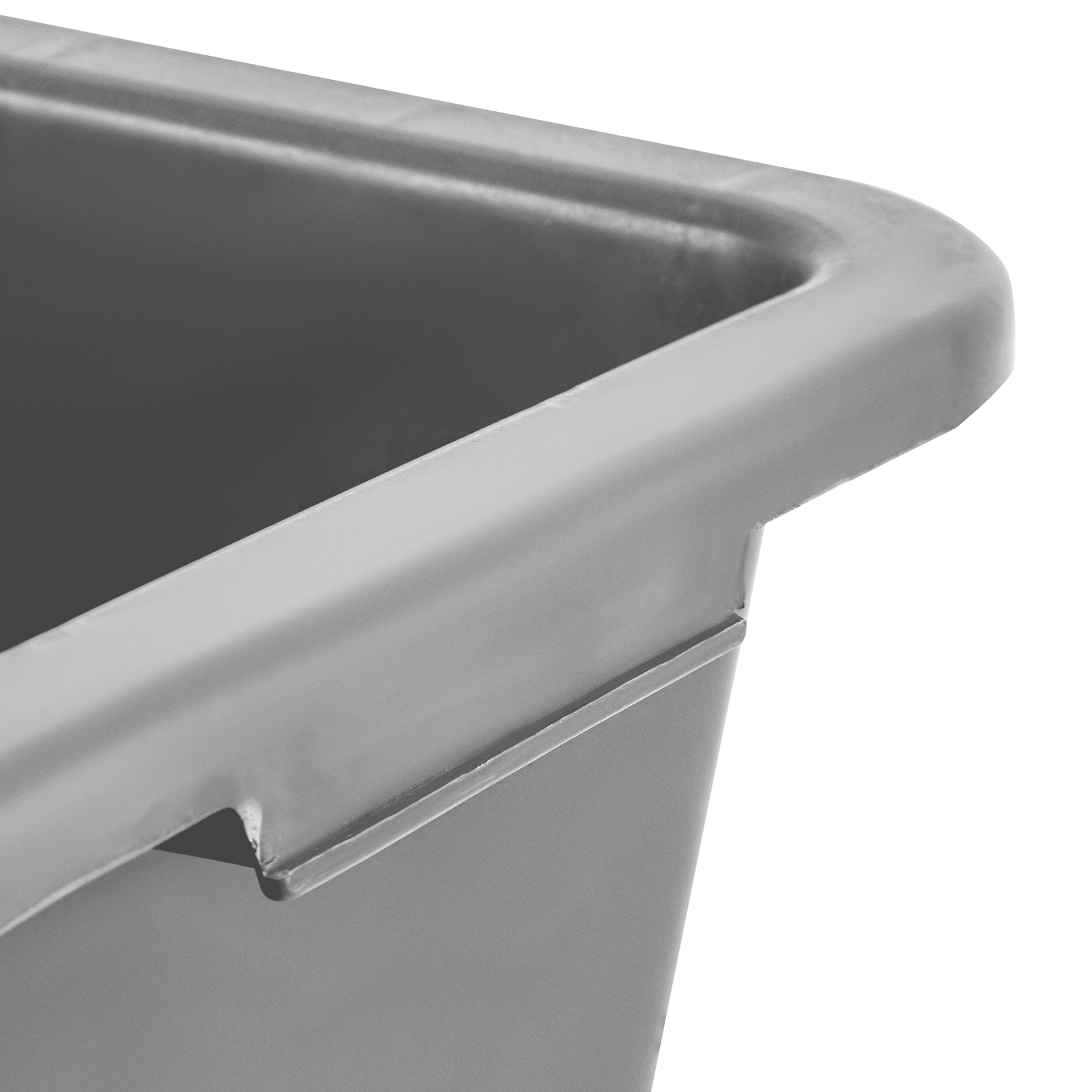 Таз прямоугольный строительный усиленный Matrix, 81472, объемом 80 л используется для приготовления растворов любого типа при проведении ремонтно-отделочных работ. Благодаря габаритам 785 х 480 мм и вместительной глубине изделия 295 мм можно применять для объемных работ. Пригодится такой таз и в быту: он удобен для хранения сыпучих материалов, сбора и утилизации садового и строительного мусора. Изделие не повреждается от растворов и применения отделочных инструментов при замешивании.