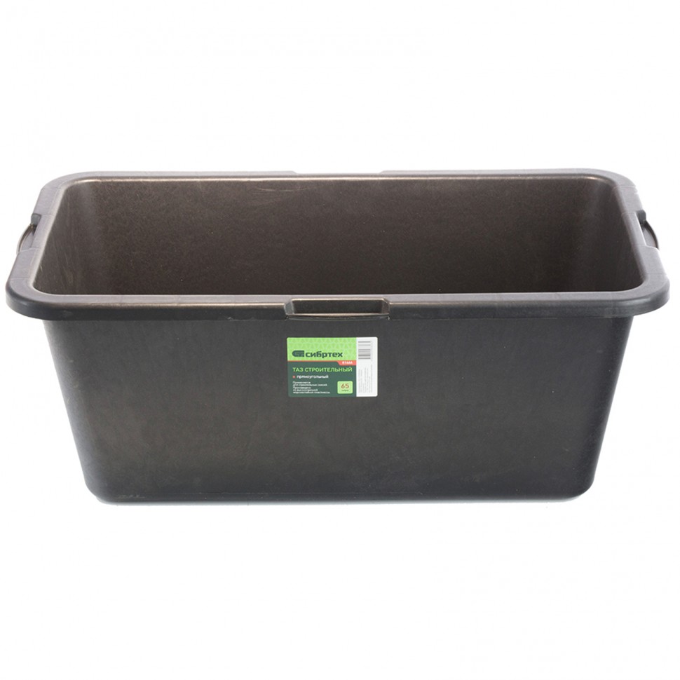Прямоугольный строительный таз Сибртех 81444 объемом 65 л используется для приготовления штукатурных, шпаклевочных, красящих, клеевых растворов для проведения ремонтных и отделочных работ. Пригодится таз и в быту — в нем удобно хранить и перемещать сыпучие материалы.