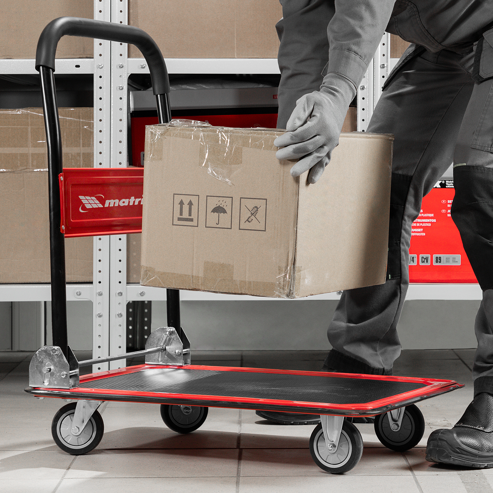 • Продуманная конструкция — противоскользящее покрытие платформы препятствует смещению груза во время транспортировки.