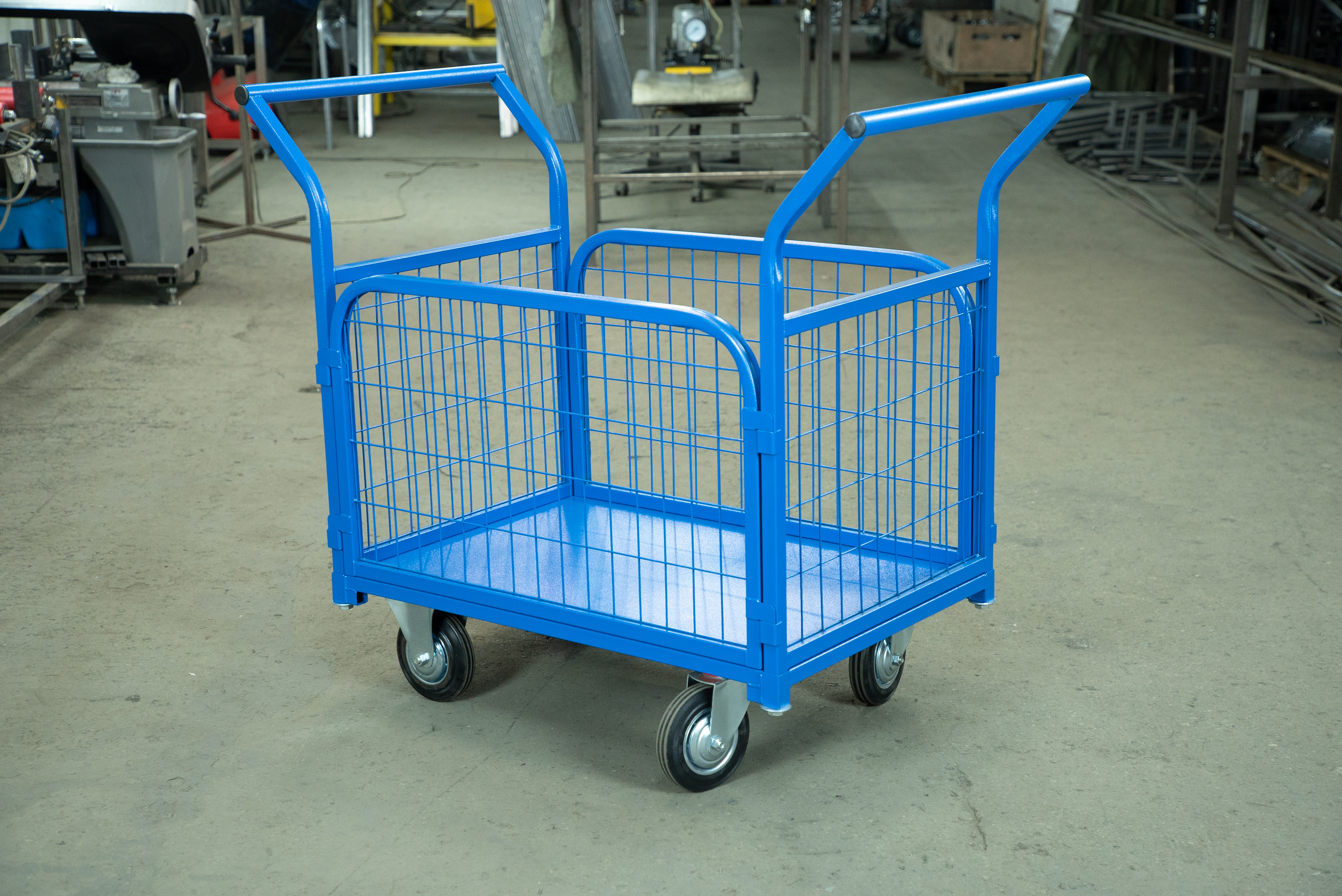 Тележка платформенная TOR ТП-2С (600х900) с бортами из сетки и двумя ручками (колеса 160 мм) в Краснодаре