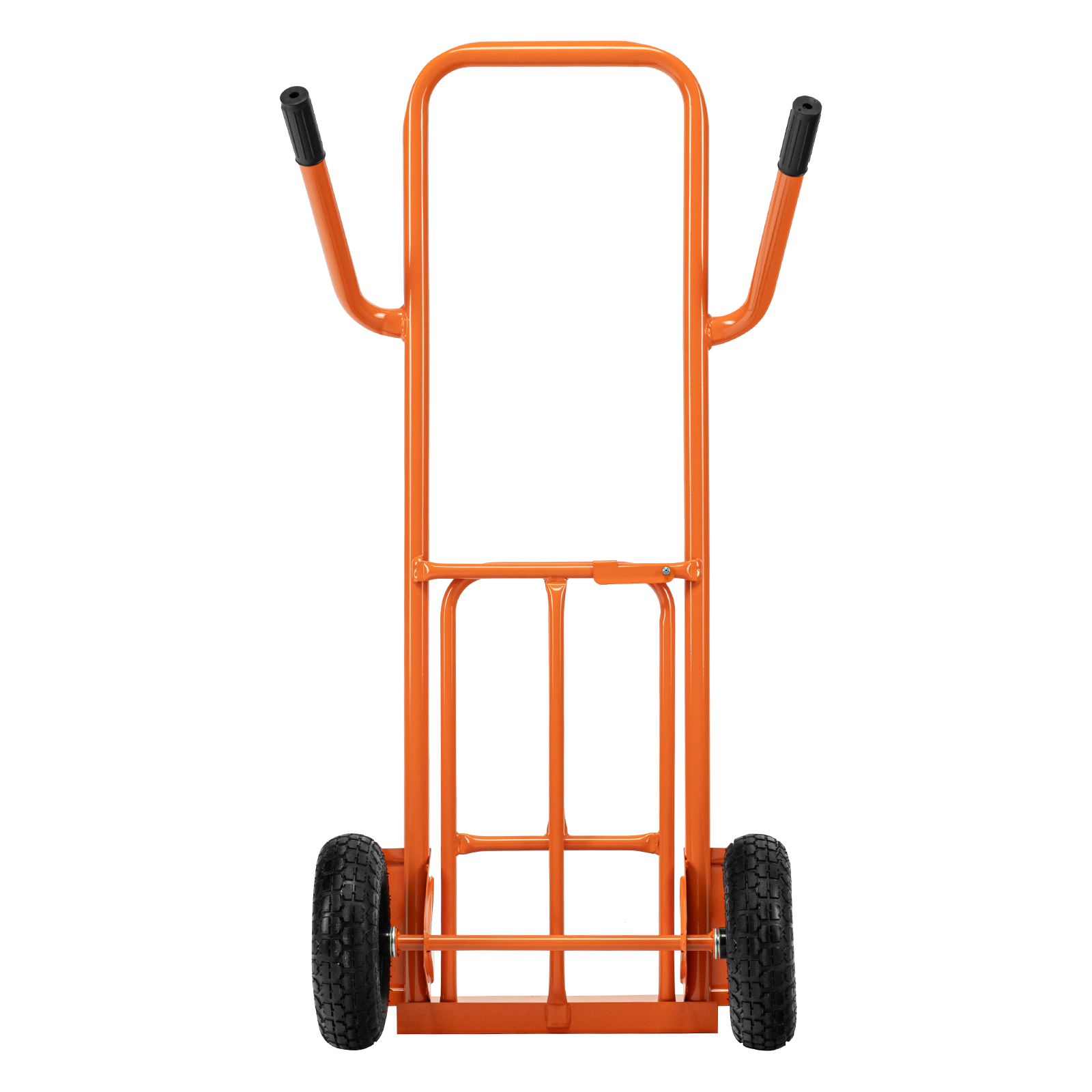 - Удобная транспортировка груза — пневматические колеса с камерами, резиновыми шинами и 2 шарикоподшипниками в каждом гасят вибрации и обеспечивают плавность хода.