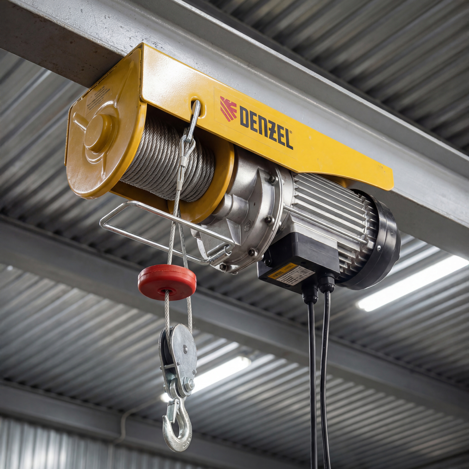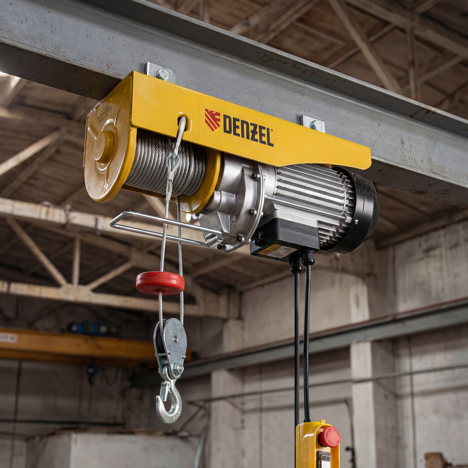 Тельфер электрический TF-800, 0.8 т, 1300 Вт, высота 12 м, 8 м/мин Denzel