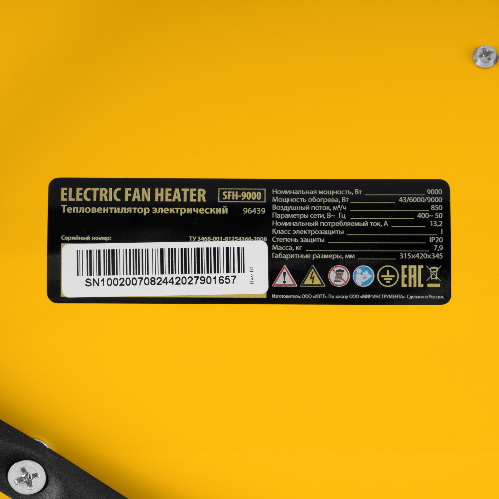 - 3 режима работы — вентиляция (без обогрева), обогрев 6000 Вт и обогрев 9000 Вт — позволяют настроить работу тепловой пушки под разные задачи.