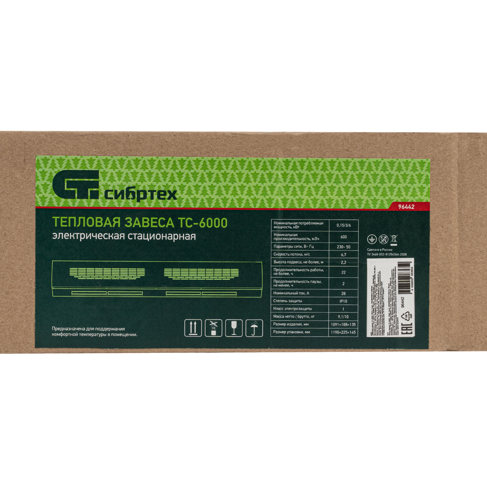 Тепловая завеса ТС-6000 (тепловентилятор) 230 В, 3 режима, 3000/6000 Вт Сибртех