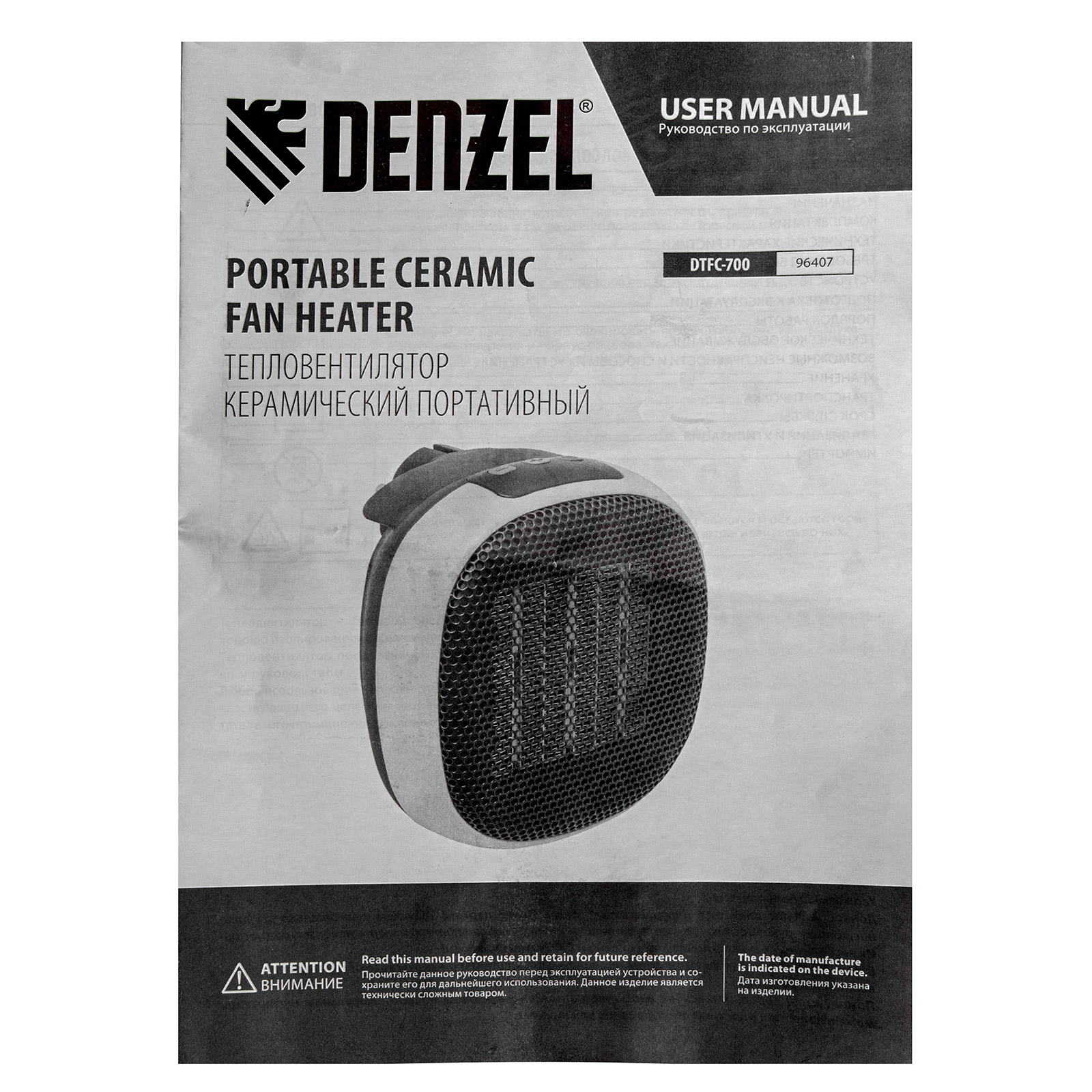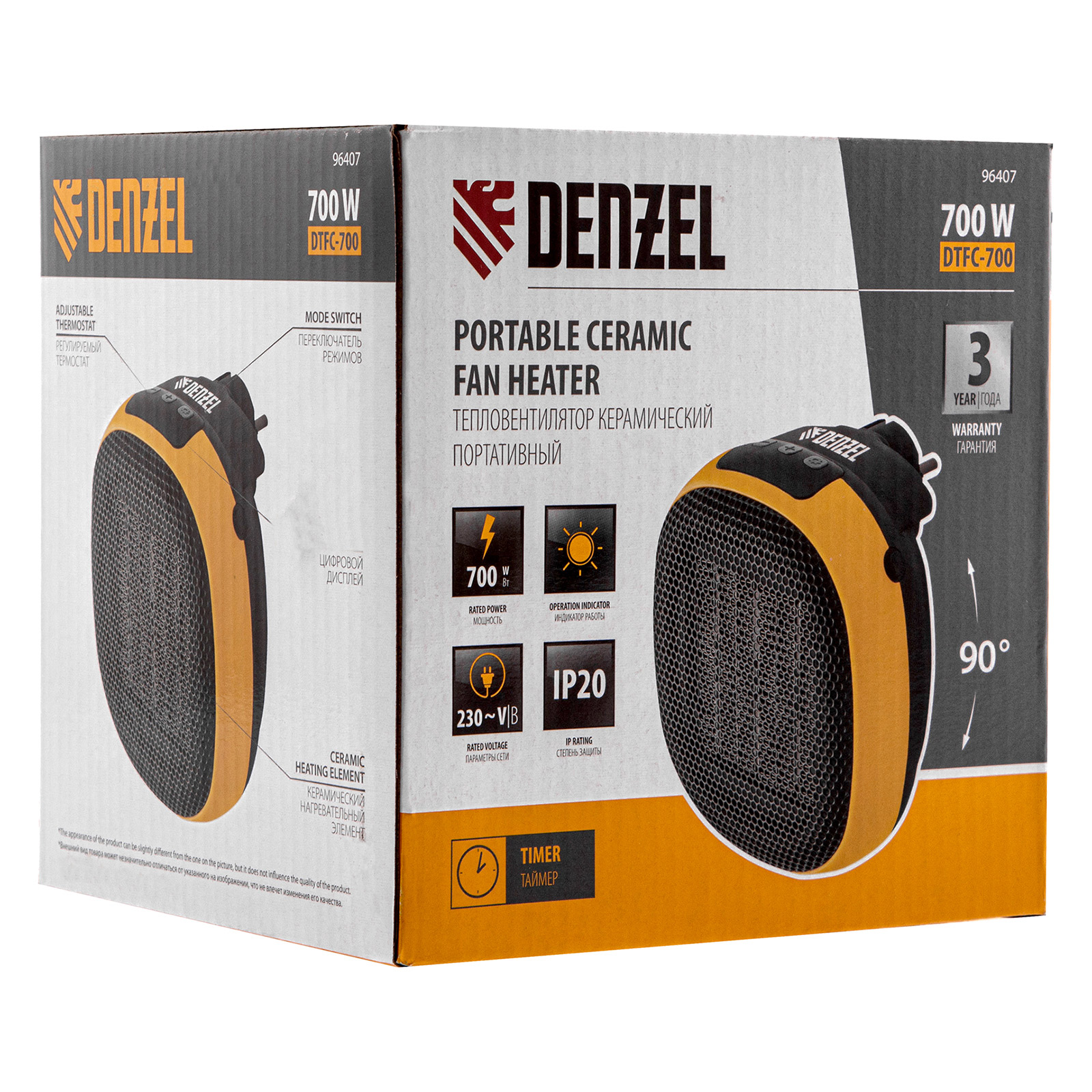 Тепловентилятор портативный керамический DTFC-700, 3 реж. вентилятор, нагрев 700 Вт Denzel в Краснодаре