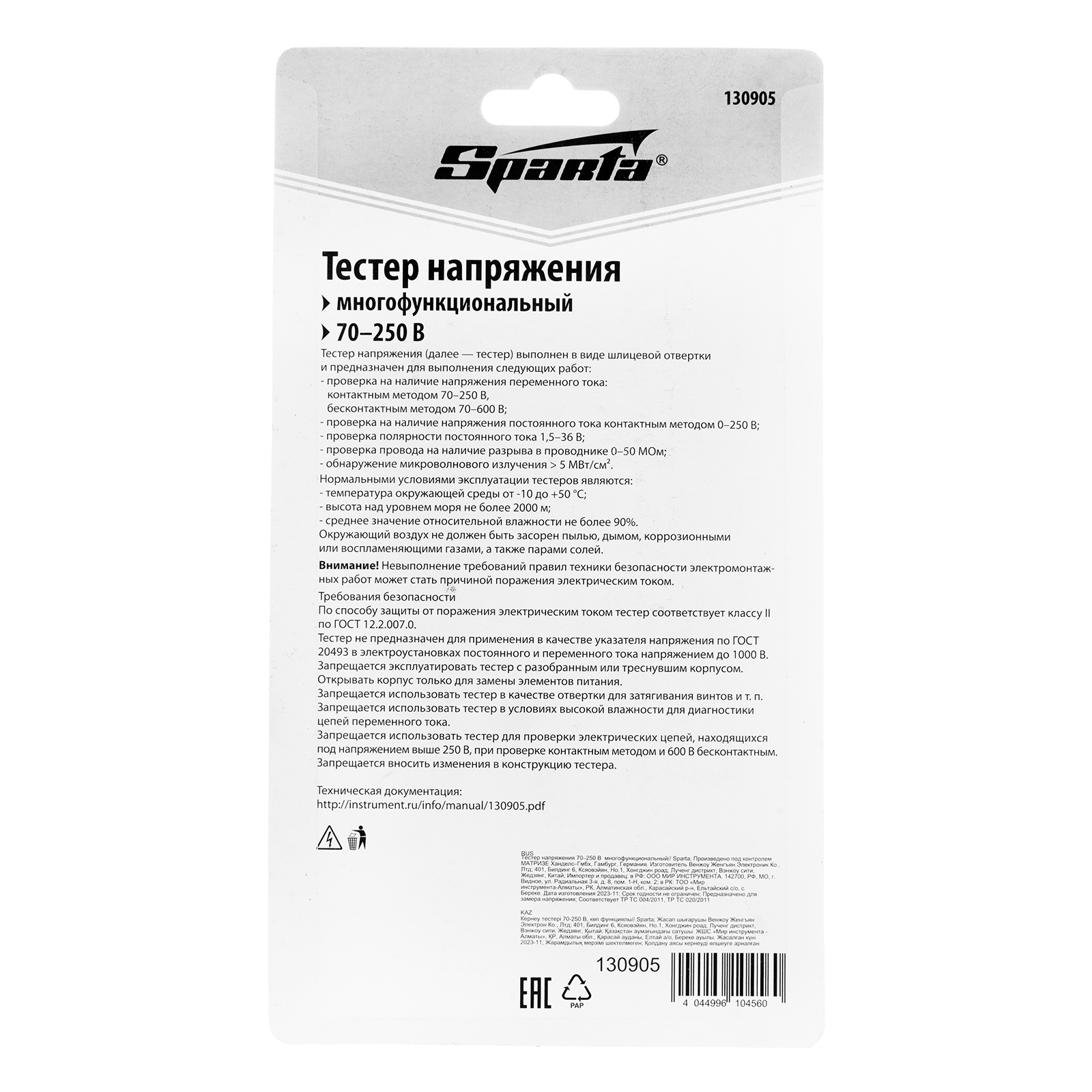 Тестер напряжения 70-250 В многофункциональный Sparta в Краснодаре