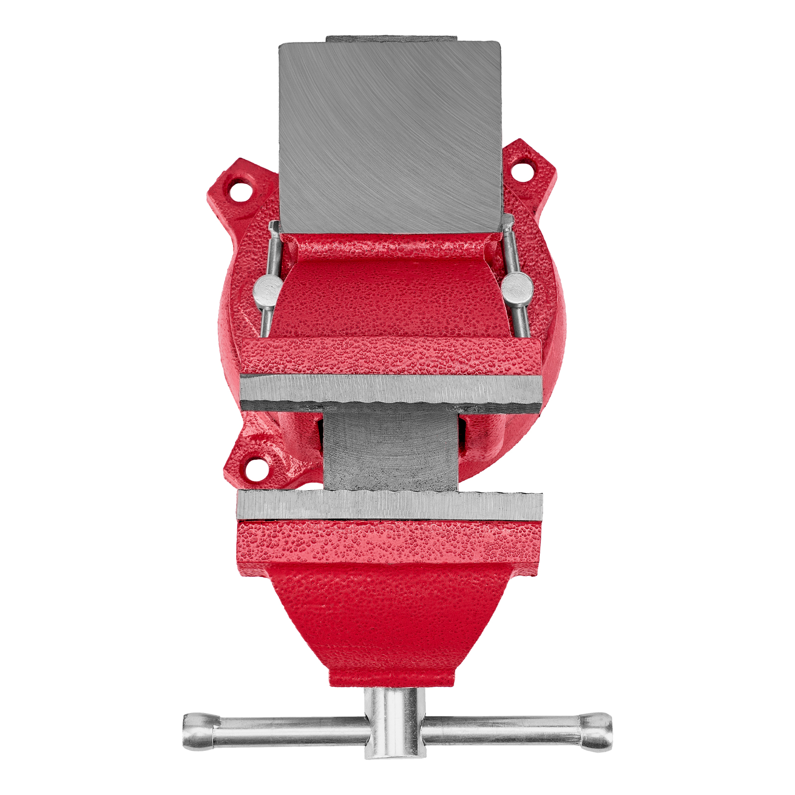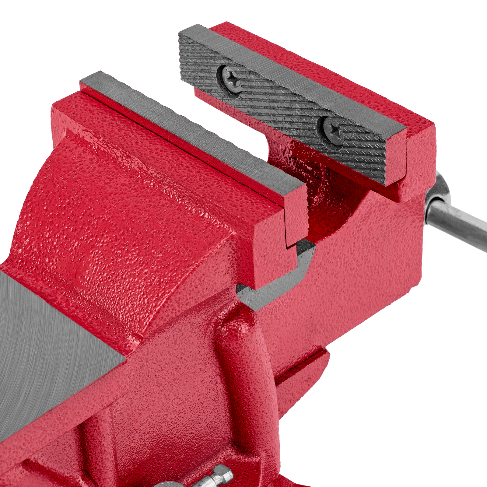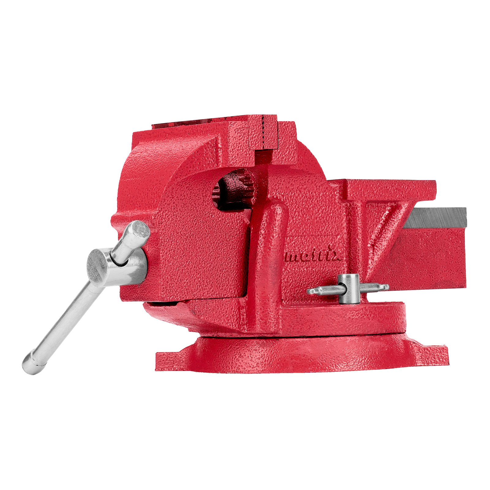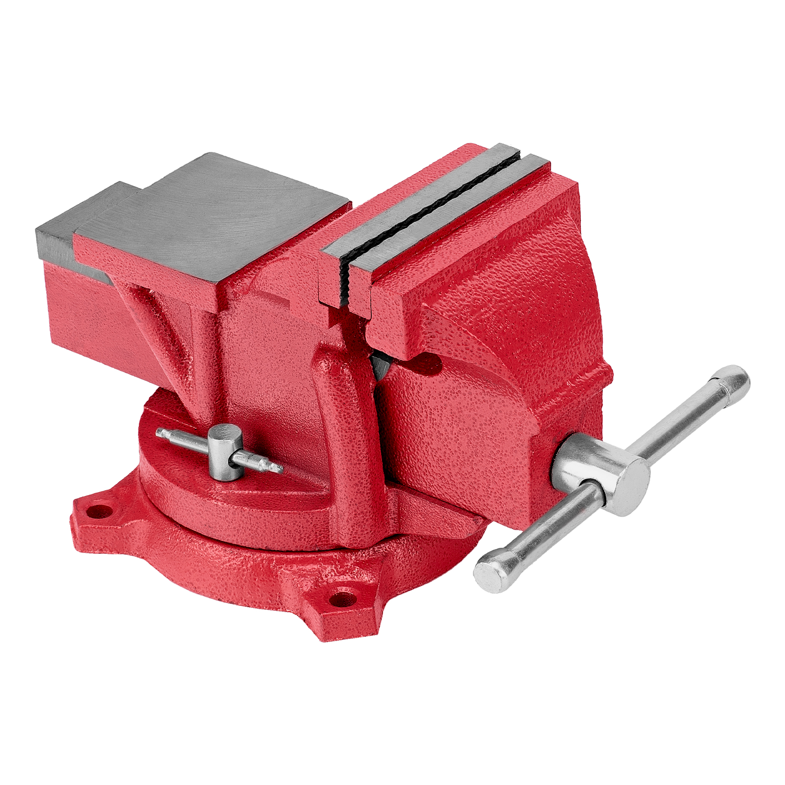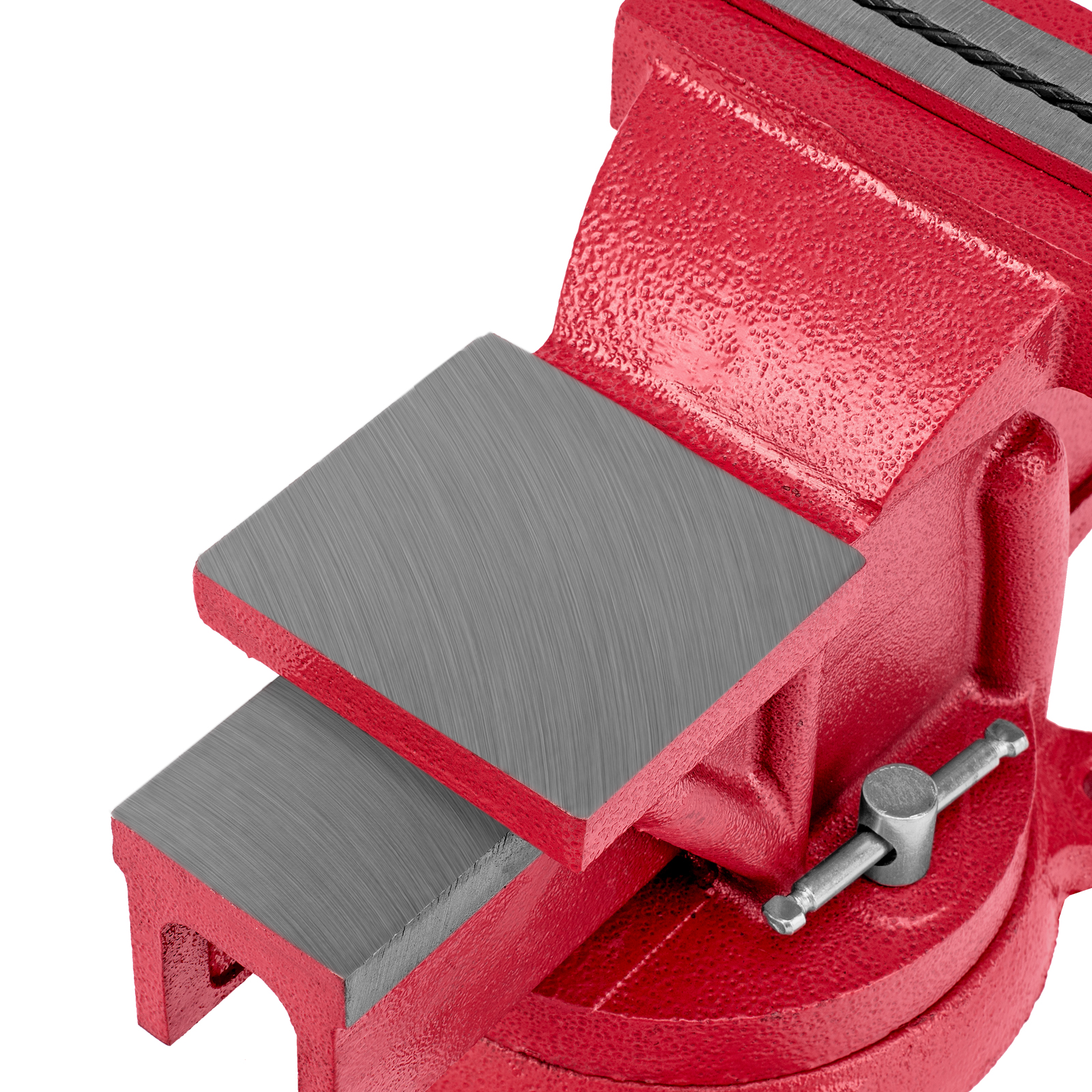 Поворотные слесарные тиски Matrix 18600 с наковальней и губками шириной 100 мм имеют рабочий ход 95 мм и предназначены для захвата и фиксации различных деталей. Поворотный механизм с прижимными винтами позволяет вращать тиски на 360° и фиксировать их в выбранном положении для удобной обработки заготовок с разных сторон. Инструмент используется для шлифовки, сверления и проведения других работ. Будет полезен в мастерской и гараже.