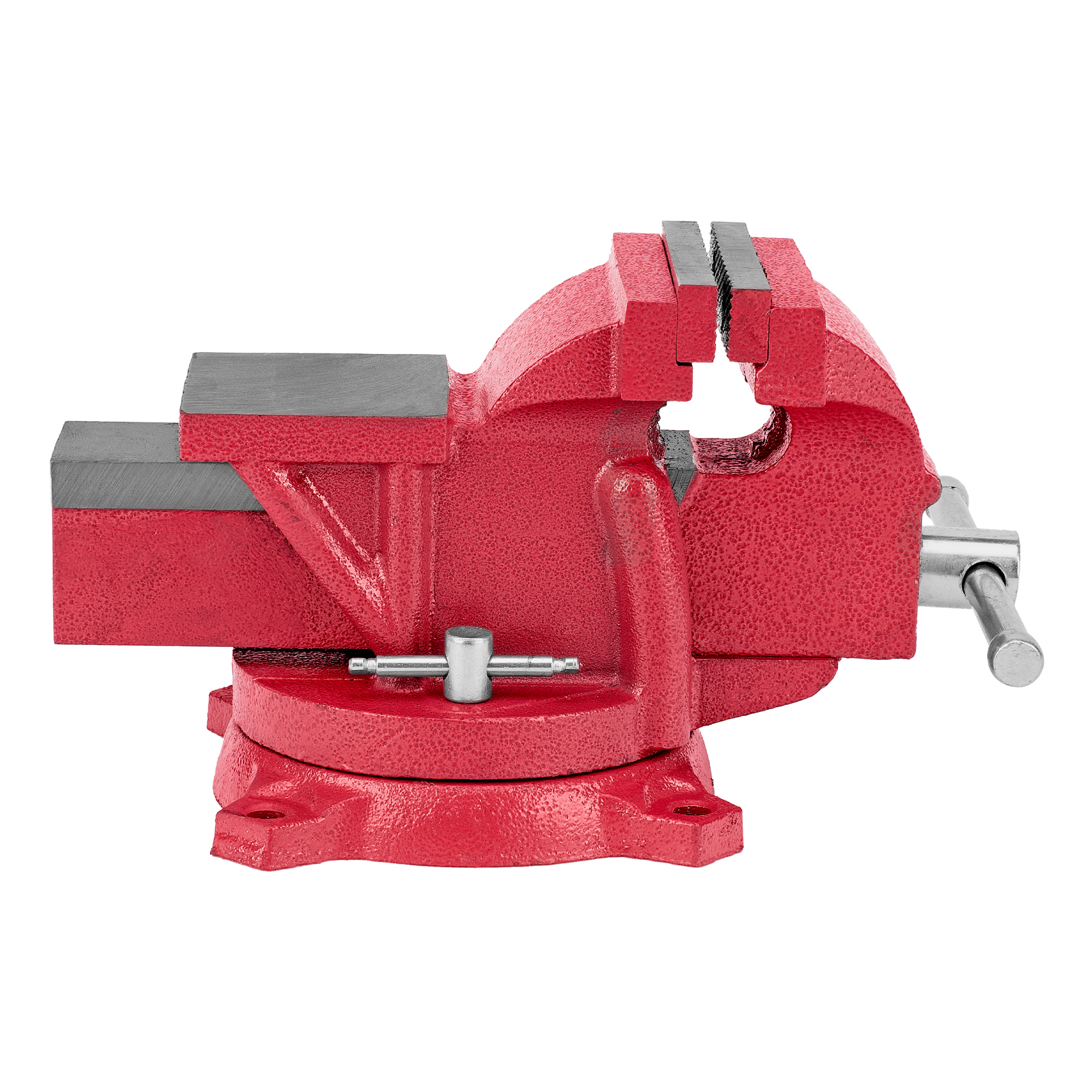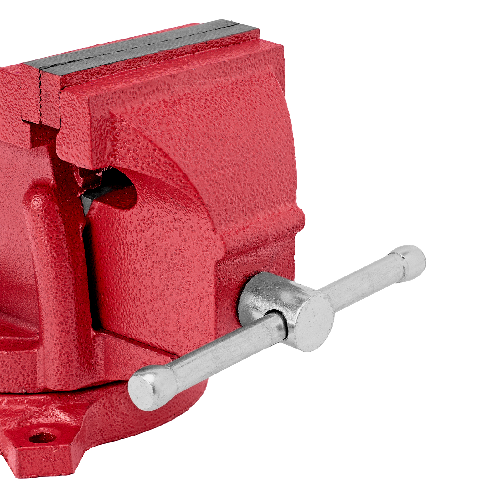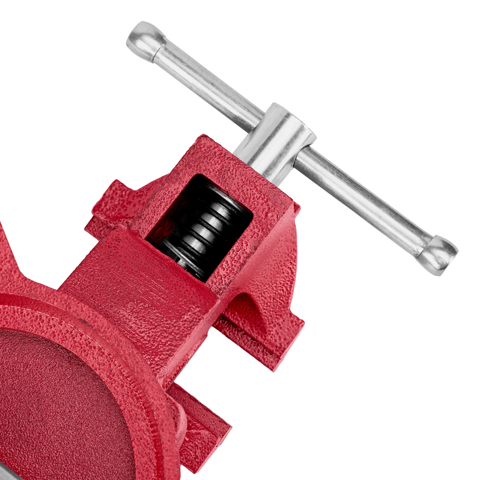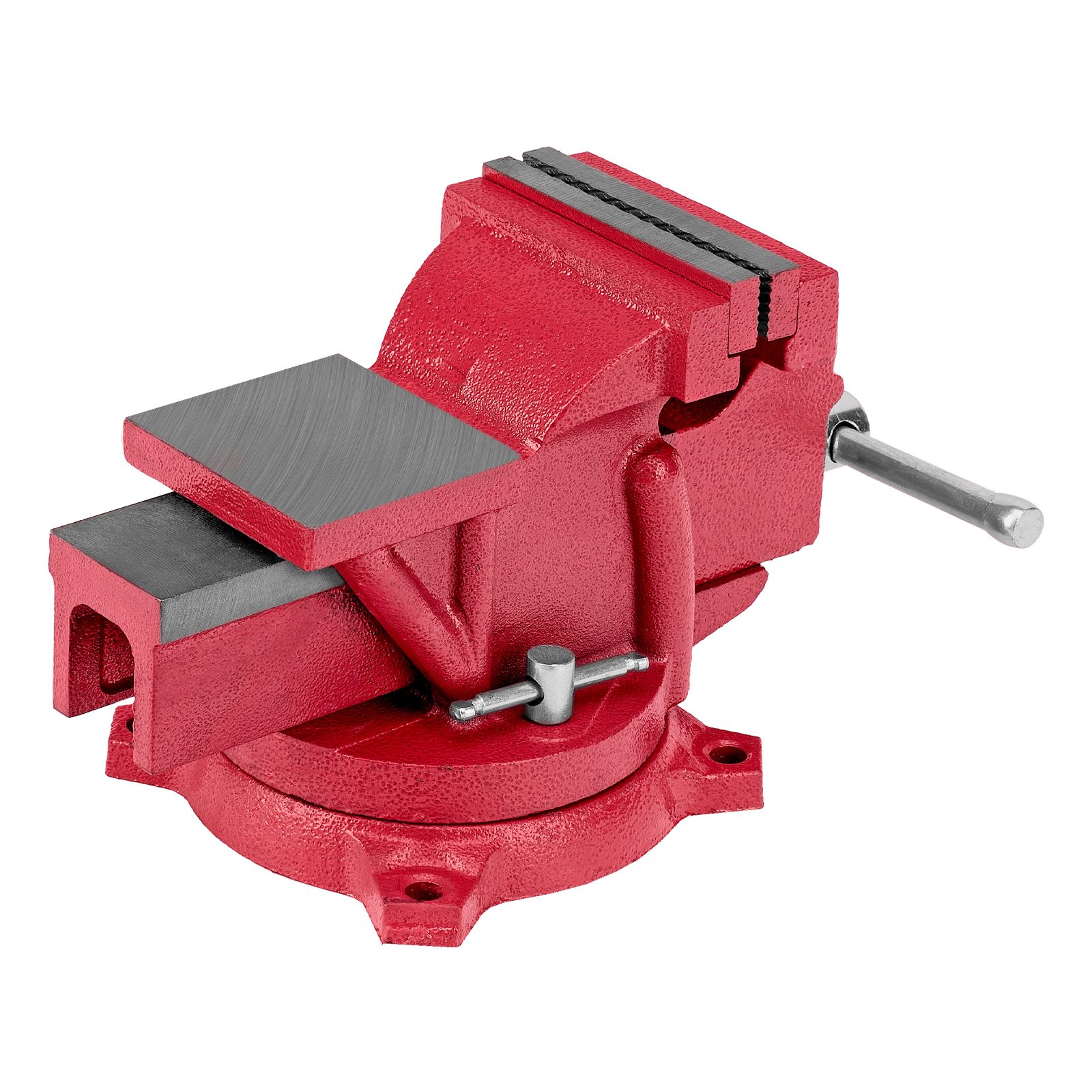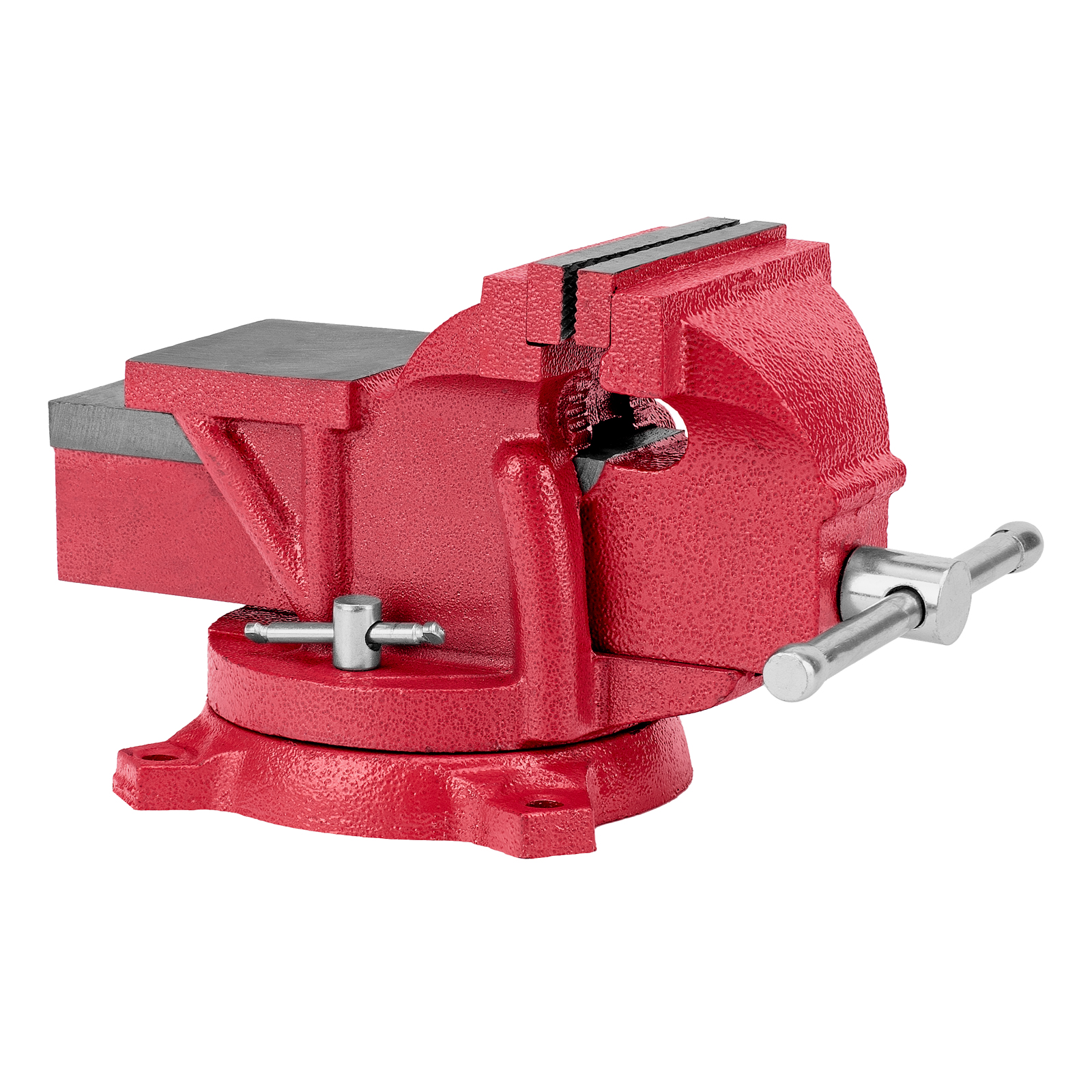 Поворотные слесарные тиски Matrix 18600 с наковальней и губками шириной 100 мм имеют рабочий ход 95 мм и предназначены для захвата и фиксации различных деталей. Поворотный механизм с прижимными винтами позволяет вращать тиски на 360° и фиксировать их в выбранном положении для удобной обработки заготовок с разных сторон. Инструмент используется для шлифовки, сверления и проведения других работ. Будет полезен в мастерской и гараже.