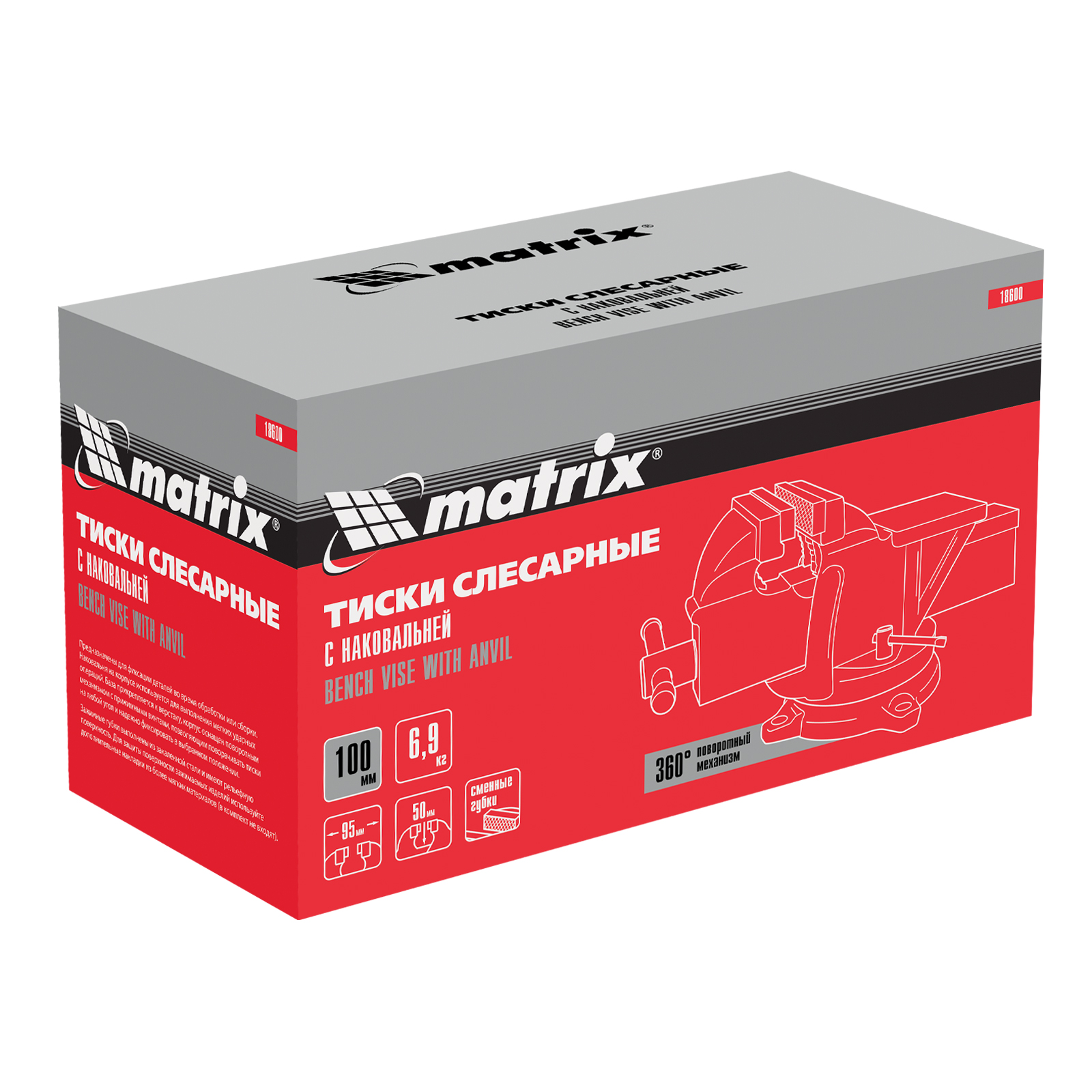 Тиски слесарные, 100 мм, поворотные, с наковальней Matrix в Краснодаре