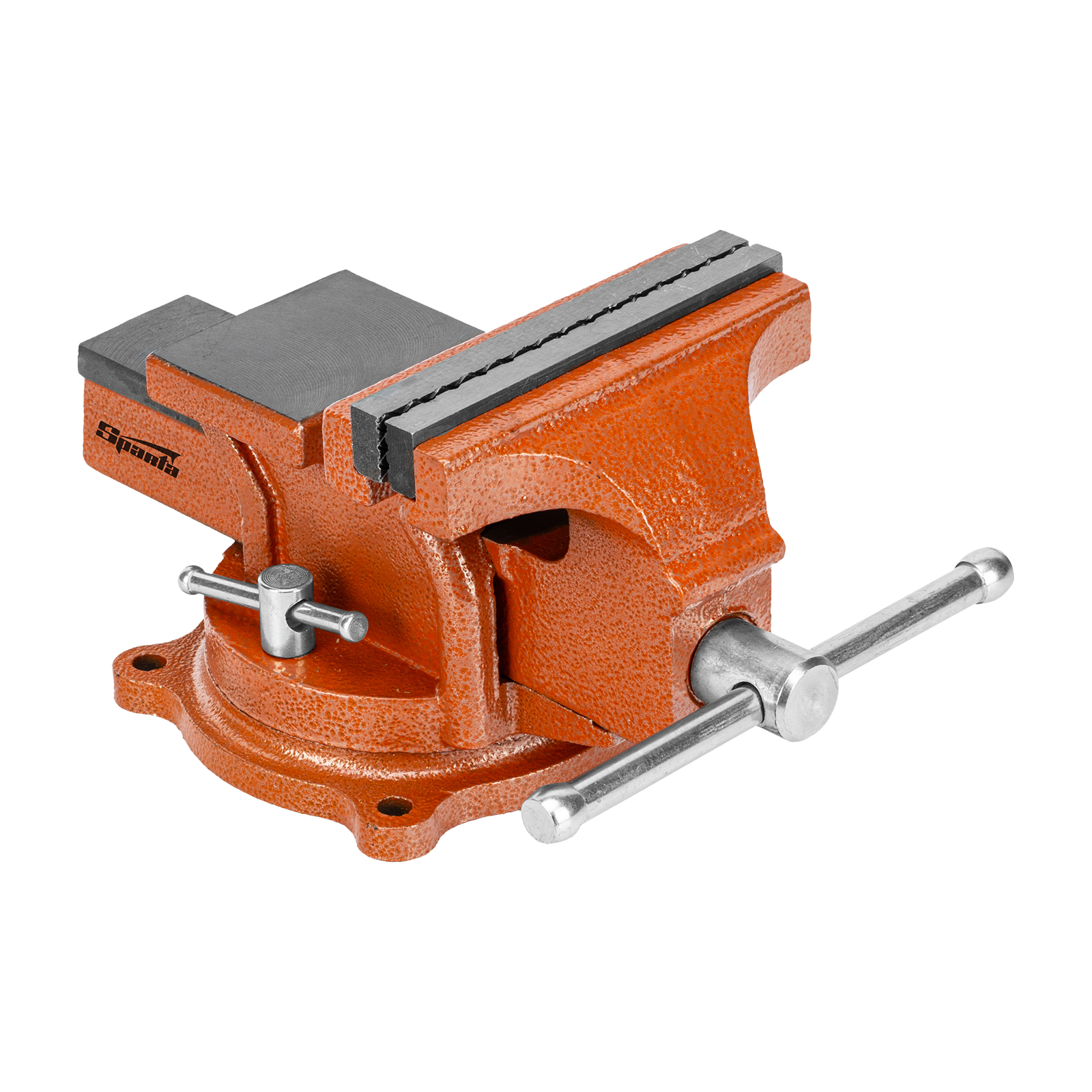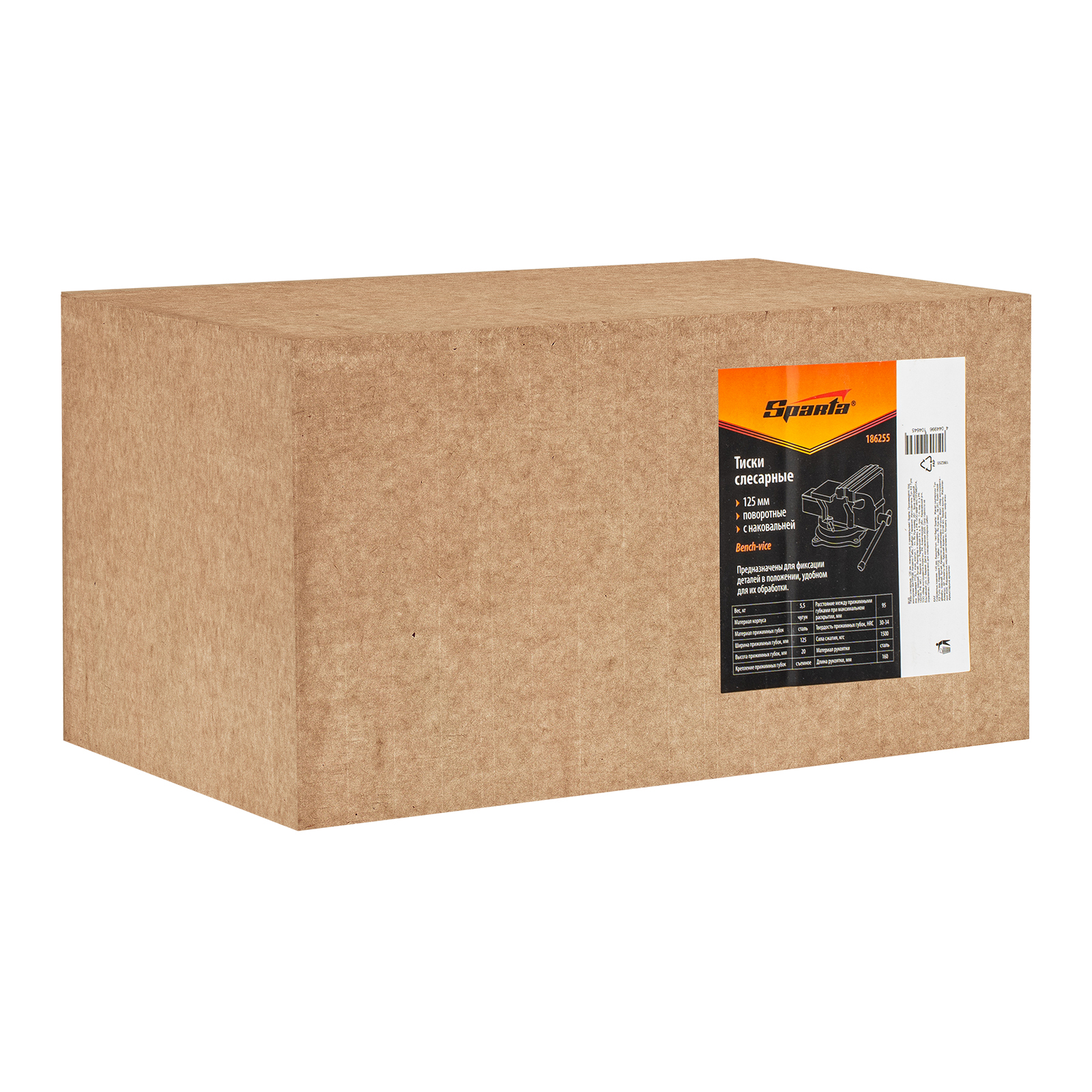 Поворотные слесарные тиски Sparta 186255 с наковальней, ширина губок 125 мм, — это небольшой инструмент для захвата деталей до 75 мм. Будут полезны в частной мастерской или гараже для удобства обработки малогабаритных заготовок.