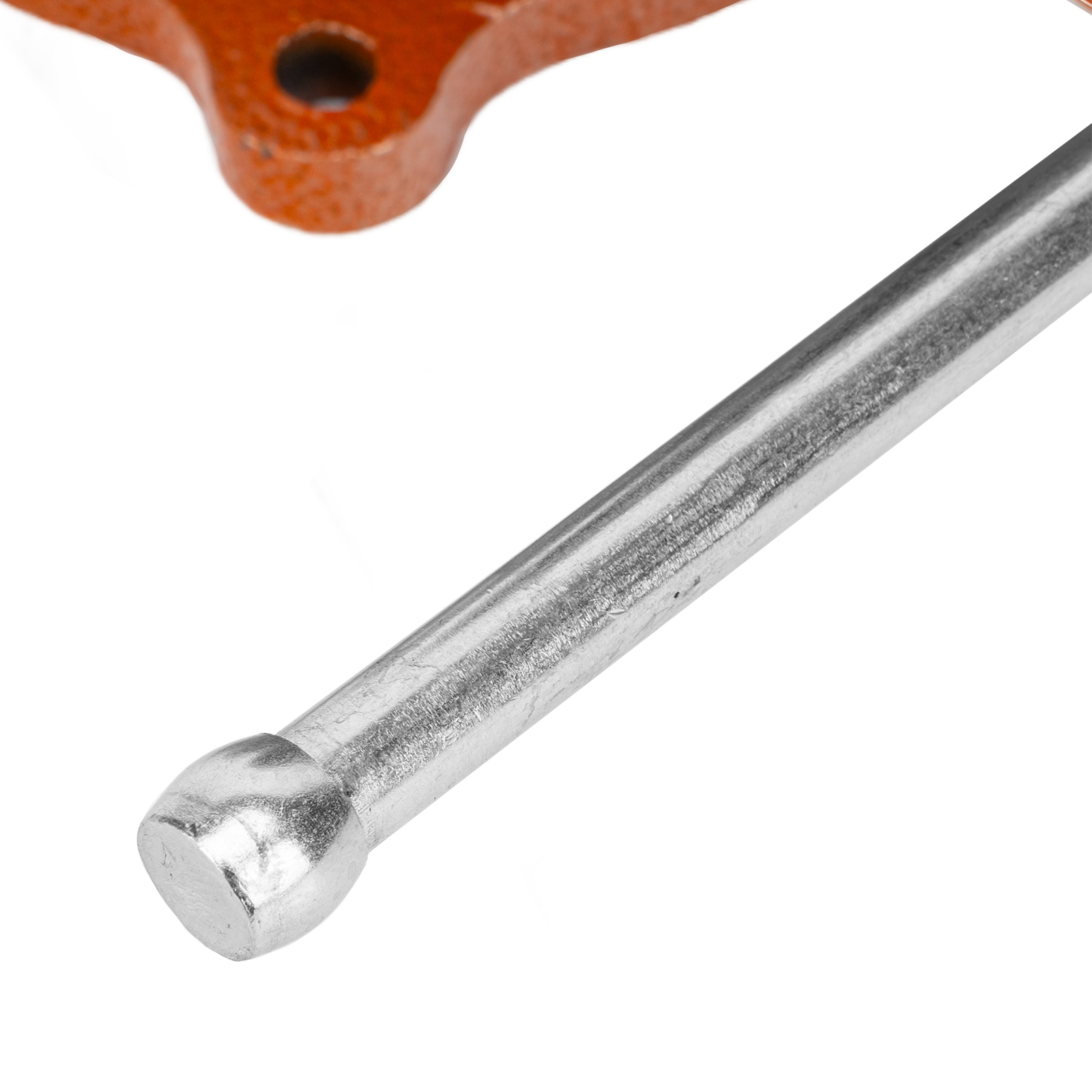 - Корпус тисков выполнен из чугуна, а губки — из стали, благодаря чему достигается высокая прочность инструмента.