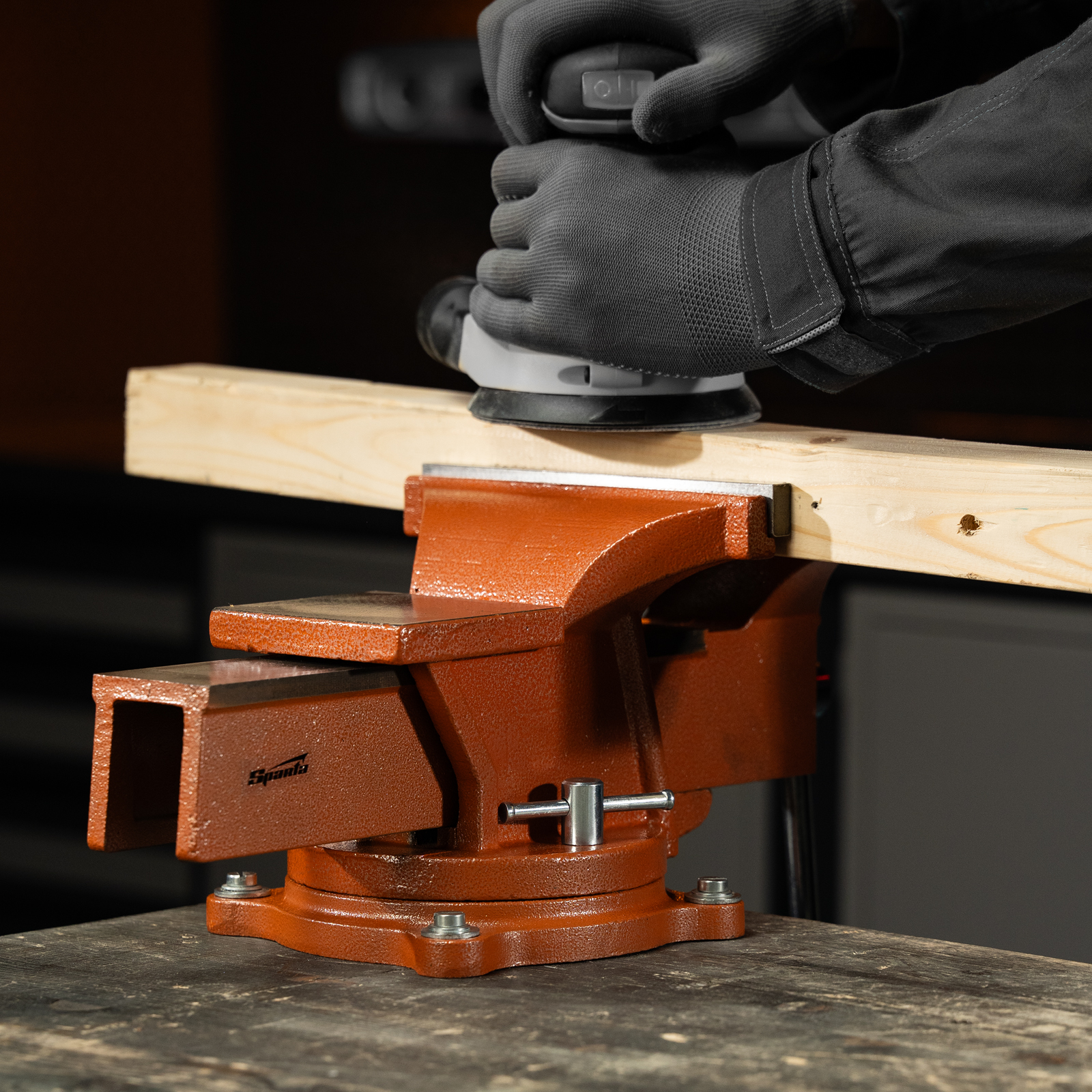 Поворотные слесарные тиски Sparta 186295 с наковальней, ширина губок 200 мм, — это небольшой инструмент для захвата деталей до 150 мм. Будут полезны в частной мастерской или гараже для удобства обработки крупногабаритных заготовок.