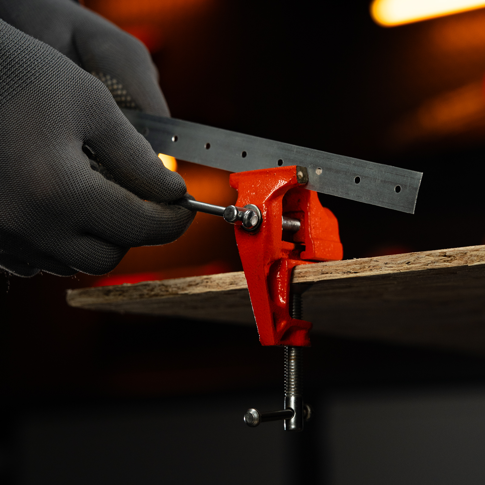 - Простое использование — винтовой зажимной механизм позволяет легко устанавливать и снимать тиски с рабочего стола.