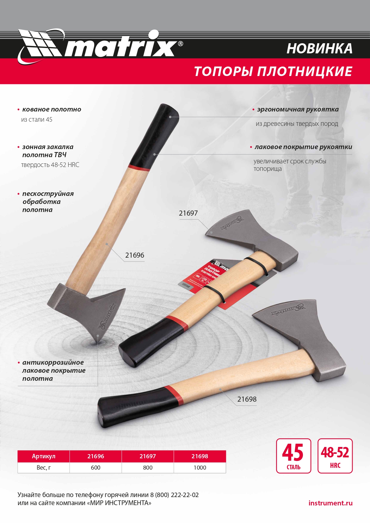 Топор плотницкий, кованый, деревянная рукоятка, 800 гр., пескоструйная обработка полотна Matrix в Краснодаре